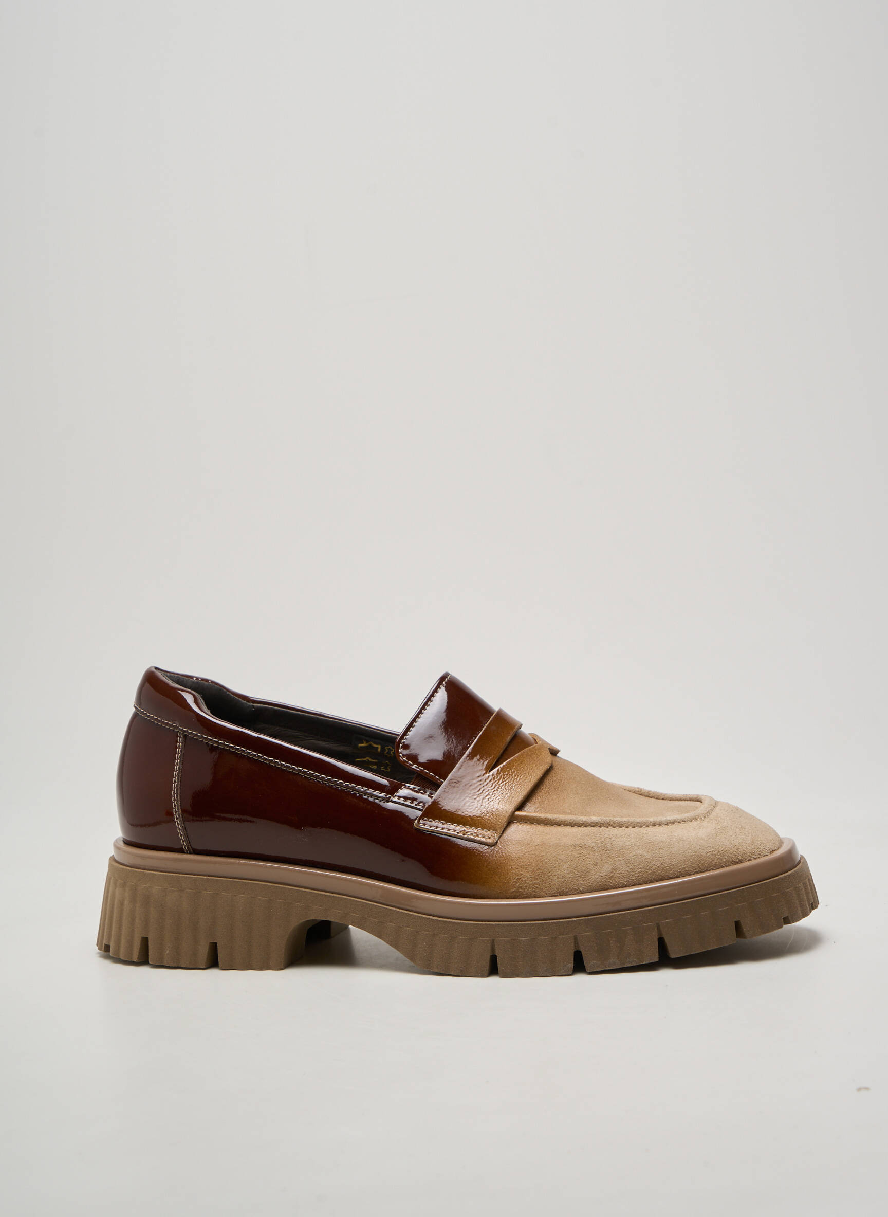 Profitez d’un vrai bon plan avec ce mocassin SOFTWAVES pour femme, qui allie élégance et confort à petit prix grâce à son mélange raffiné de cuir verni brun et de cuir velouté beige, mis en valeur par une semelle crantée moderne idéale pour suivre toutes vos envies du quotidien sans compromis sur le style urbain et tendance.