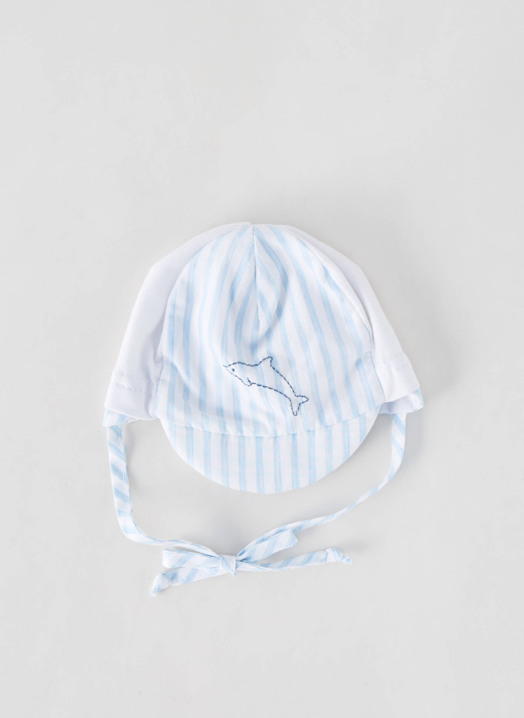 Profitez d’un vrai bon plan avec cette casquette pour enfant de la marque STERNTALER, idéale pour allier protection et économie avec style. Son motif rayé bleu ciel et blanc apporte une touche de douceur, tandis que la broderie délicate d’un petit dauphin sur l'avant ajoute une note ludique parfaitement adaptée aux plus petits. Les liens à nouer sous le menton garantissent un maintien optimal, ce qui en fait un accessoire pratique et indispensable, parfait pour les sorties au soleil à prix mini.