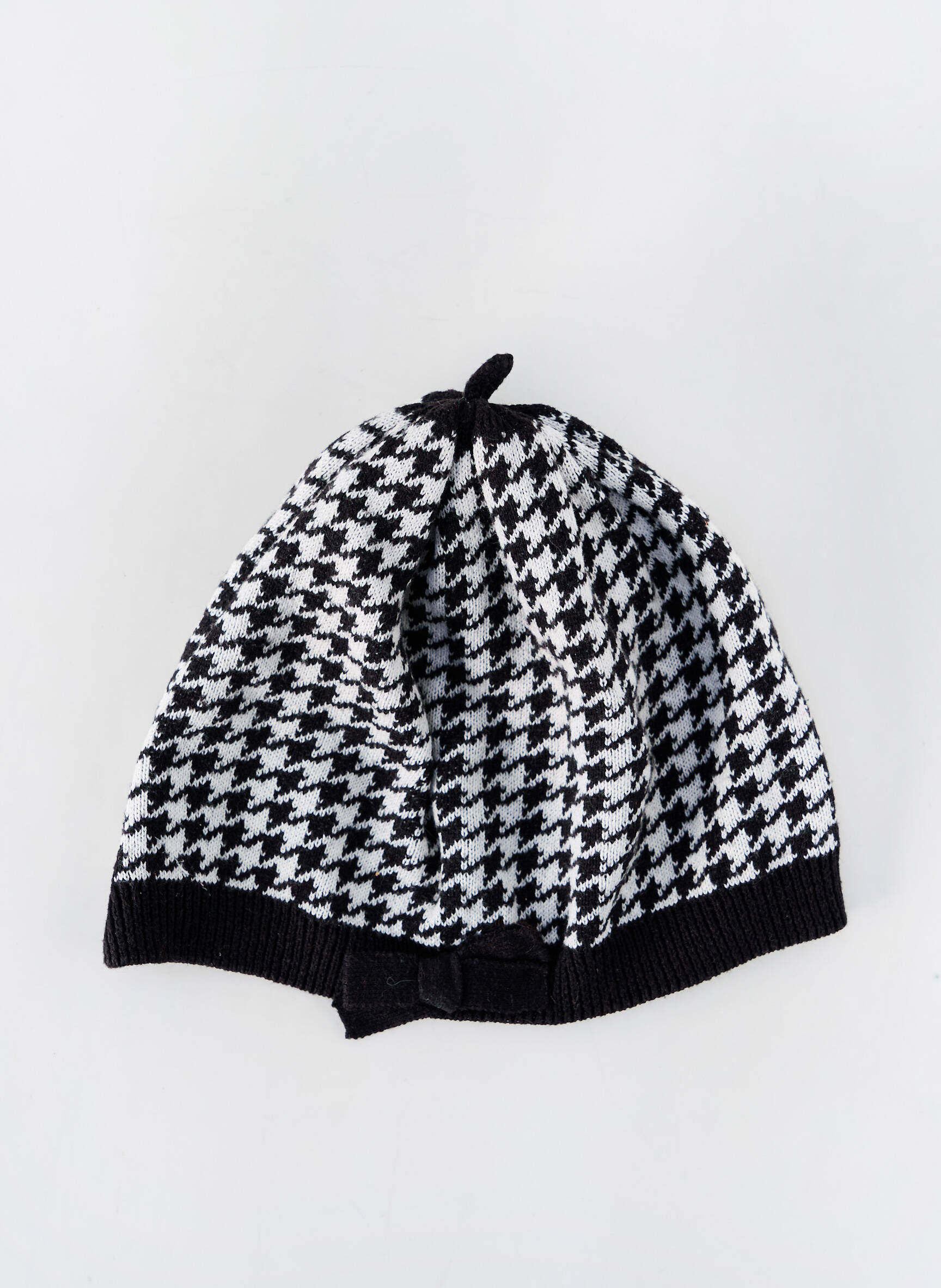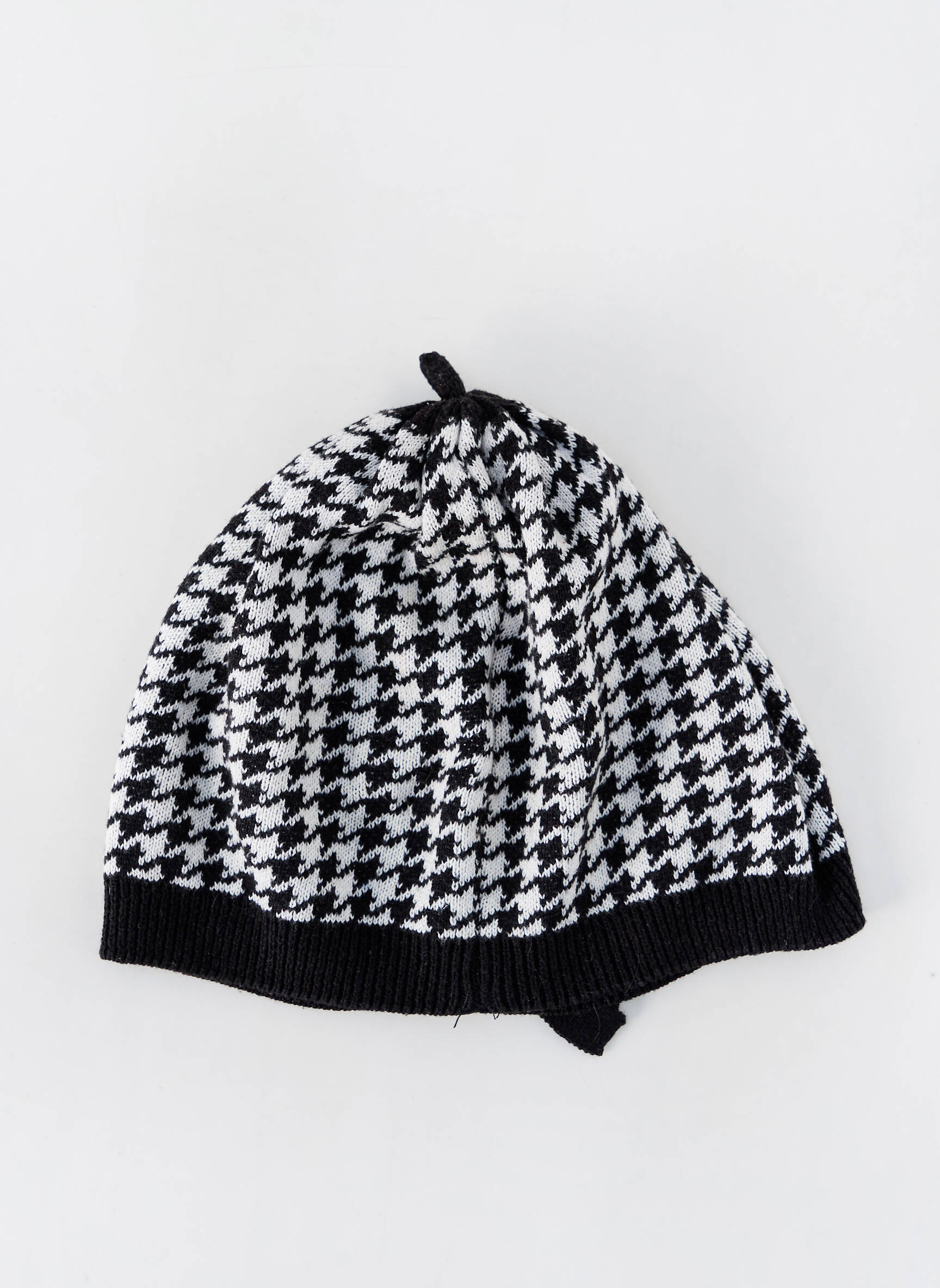 Profitez d’un bon plan mode en craquant pour ce bonnet femme signé H&M, une pièce tendance au motif pied-de-poule noir et blanc, idéal pour rester stylée sans se ruiner. Son allure chic et son petit nœud assorti ajoutent une note féminine et élégante, parfait pour accessoiriser vos tenues d’hiver à prix mini.