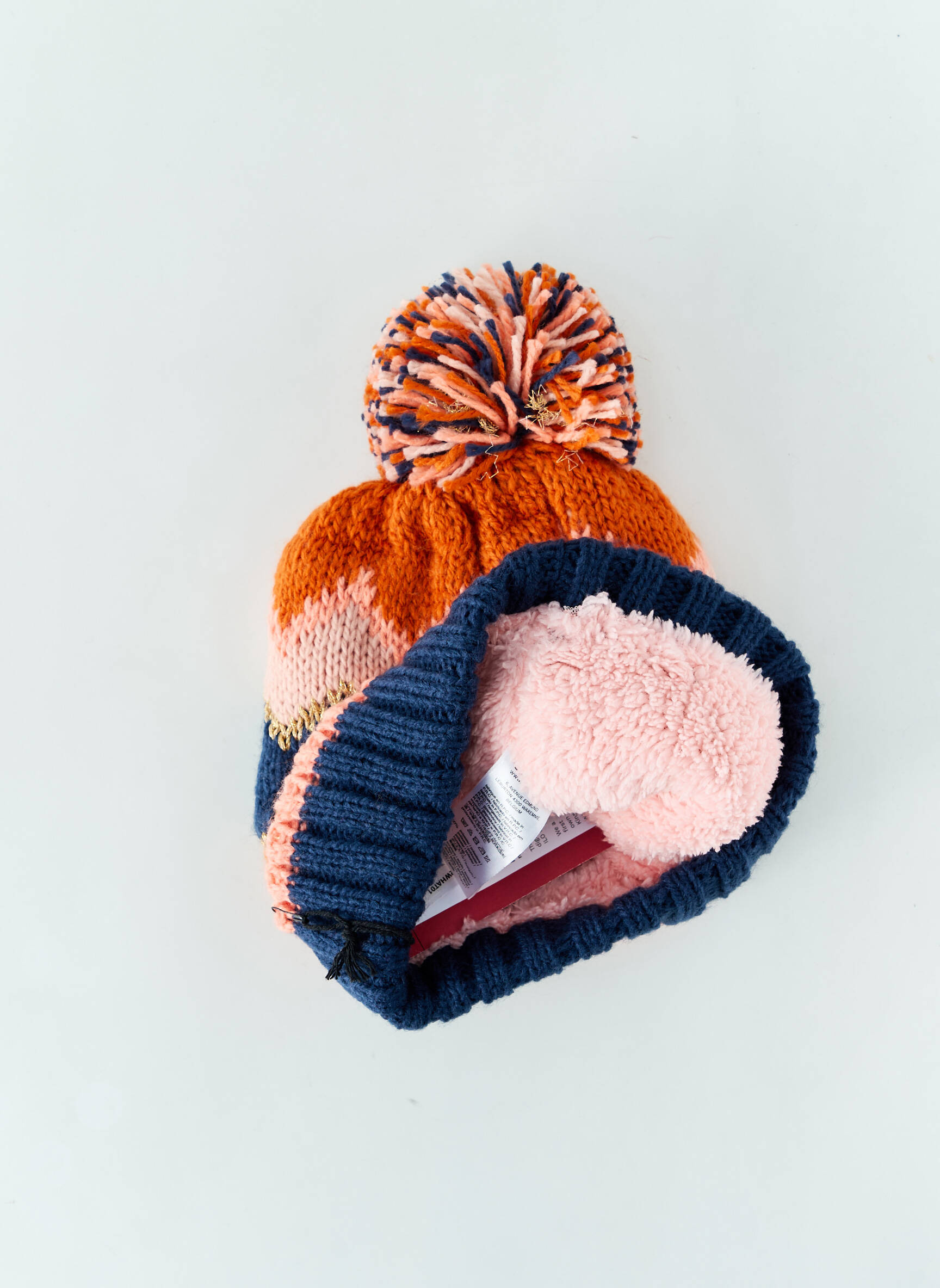 Offrez-vous un bon plan mode avec ce bonnet J&JOY pour femme, parfait pour affronter le froid avec style sans vous ruiner. Ses teintes vitaminées mêlant orange, rose, bleu marine et blanc, son motif zigzag tendance ainsi que son gros pompon multicolore lui donnent une allure à la fois moderne et ludique, tandis que son large revers côtelé apporte la touche finale à ce petit prix plein de peps.