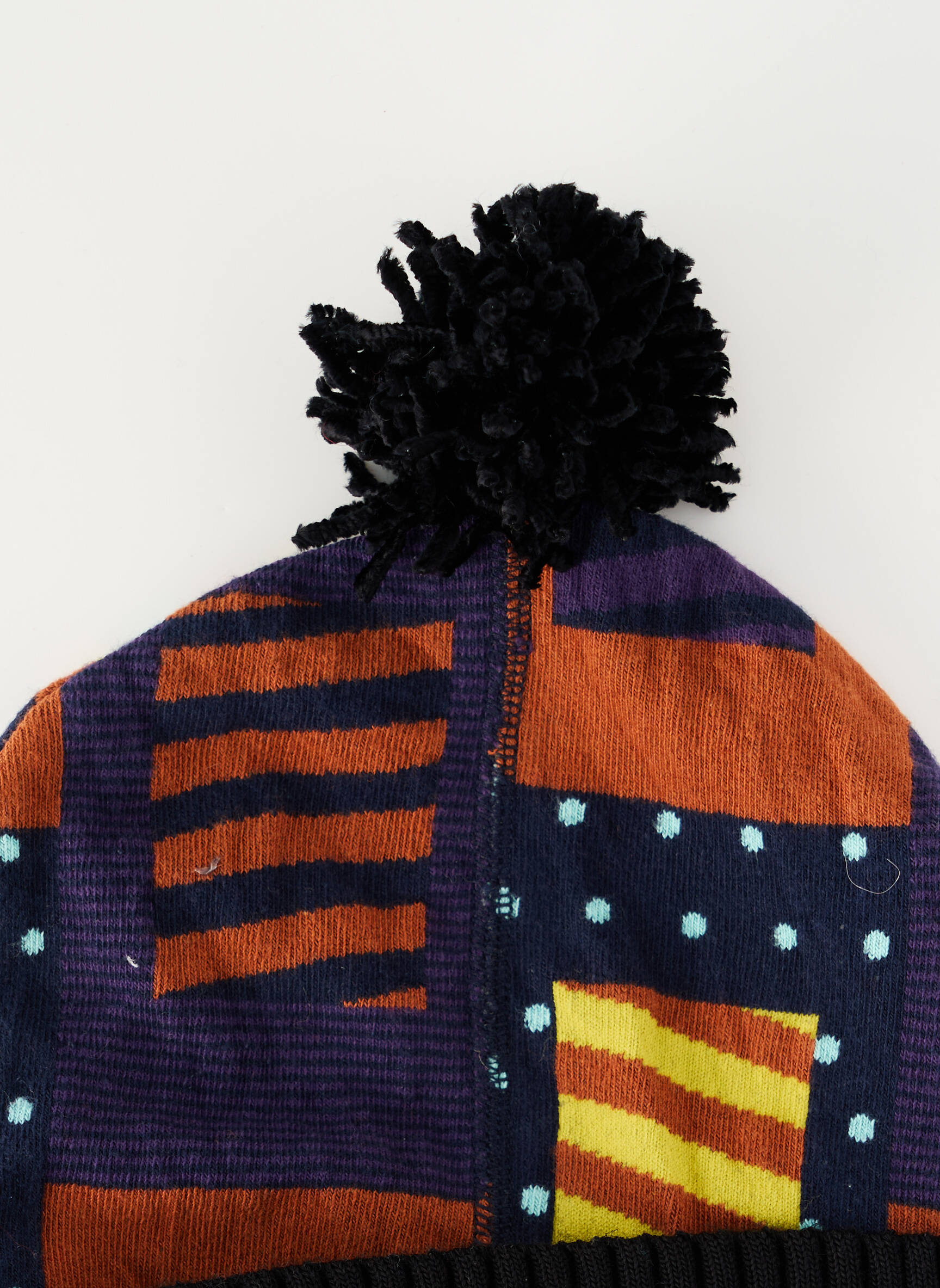 Profitez d’un véritable bon plan mode avec ce bonnet MADE IN SENS pour femme, parfait pour apporter une touche d’originalité à petit prix. Son motif graphique mêlant des jeux de rayures orange et jaunes, des pois bleus et un fond violet profond attire le regard, tandis que le revers côtelé noir et le pompon noir ajoutent une finition élégante et moderne. C’est le choix idéal pour protéger votre tête avec style tout en faisant des économies.