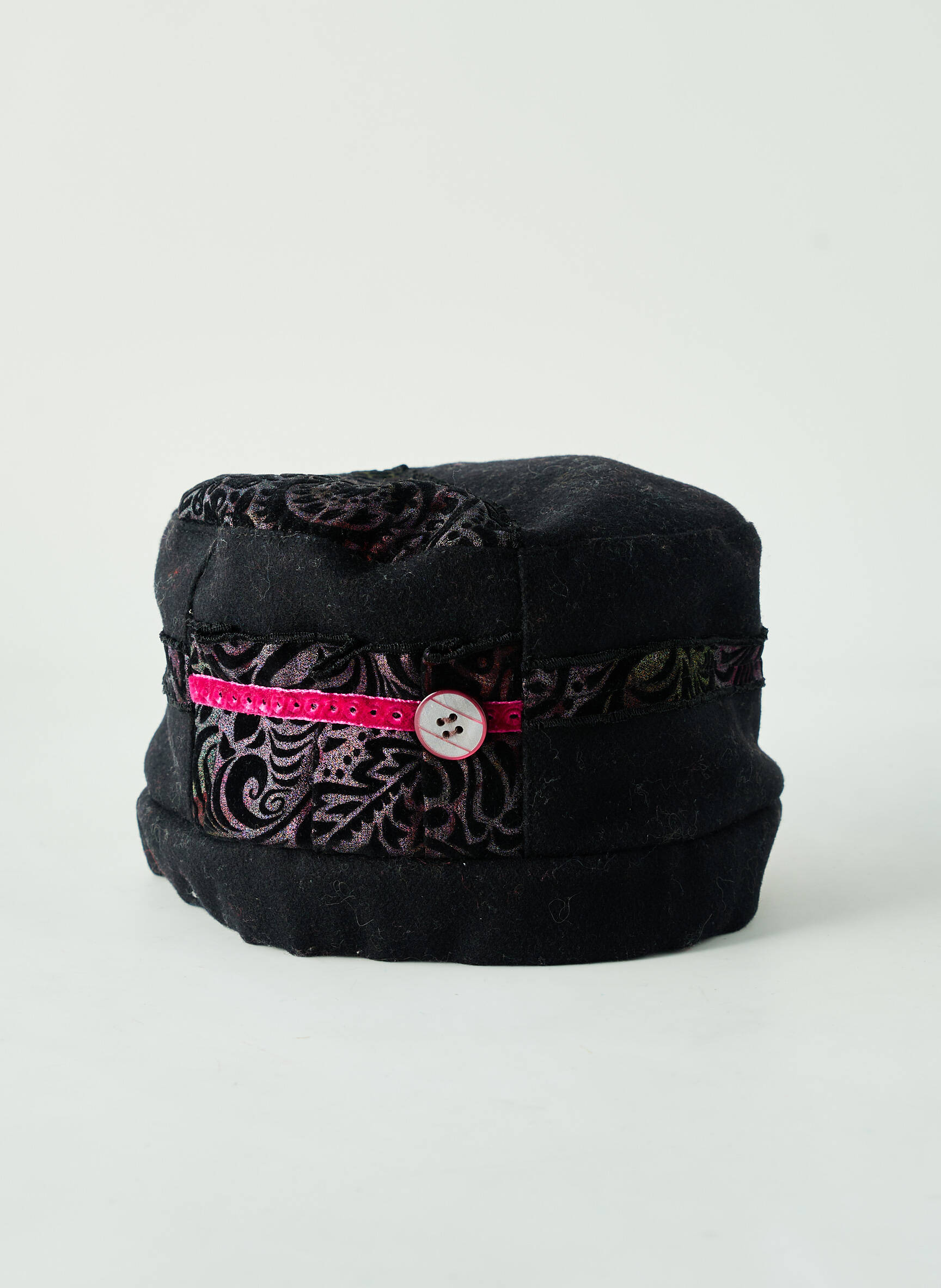 Et si votre bonnet devenait une véritable œuvre d'art à porter ? Ce bonnet MTM pour femme mêle avec brio un noir profond à des touches de motifs floraux subtils et délicats, relevés par un ruban fin fuchsia orné d’un petit bouton contrastant, lui conférant une élégance discrète et originale. Sa forme légèrement arrondie et ajustée promet un maintien confortable tout en apportant une touche unique et féminine à vos tenues hivernales.