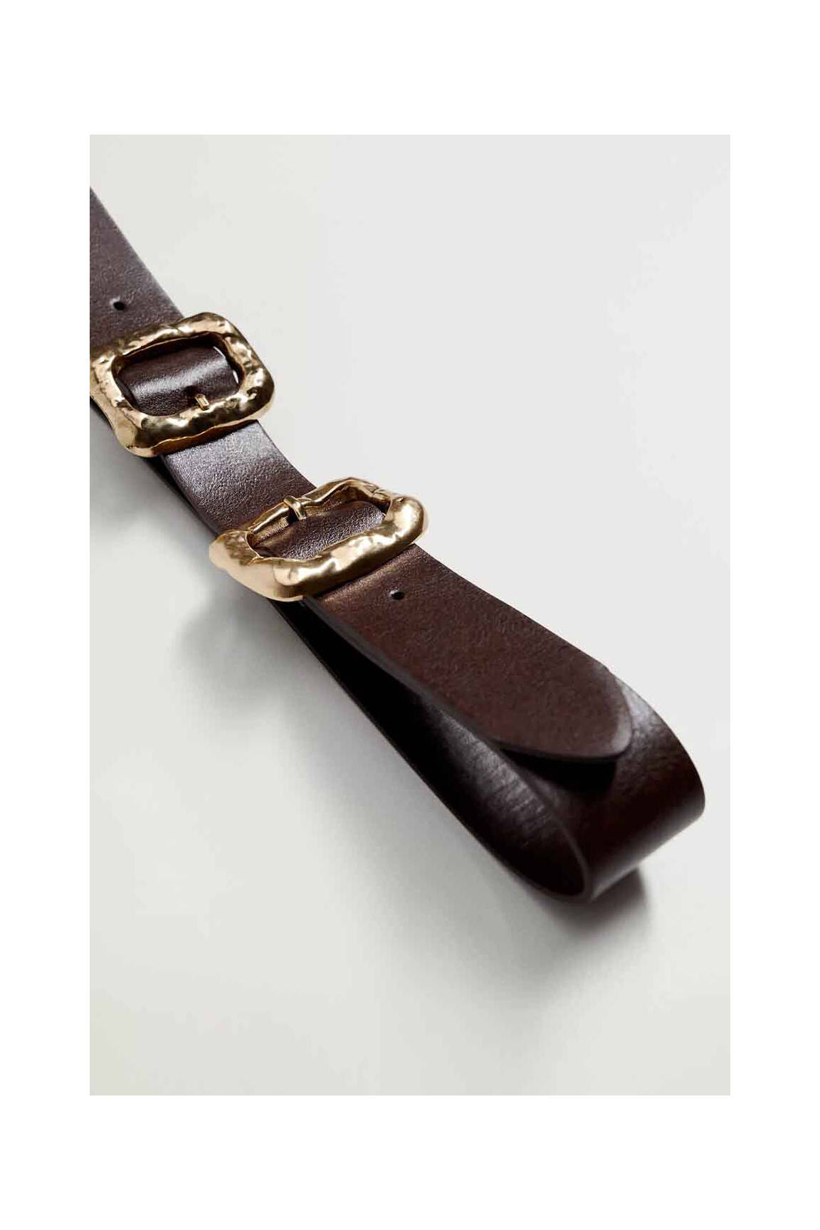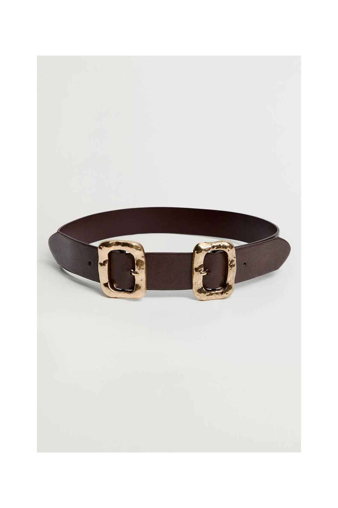 Profitez d’un accessoire tendance à prix mini avec cette ceinture MANGO pour femme, dotée d’un joli cuir marron et de deux boucles dorées effet martelé qui lui apportent une touche d’originalité et d’élégance, parfaite pour sublimer votre look sans vous ruiner.