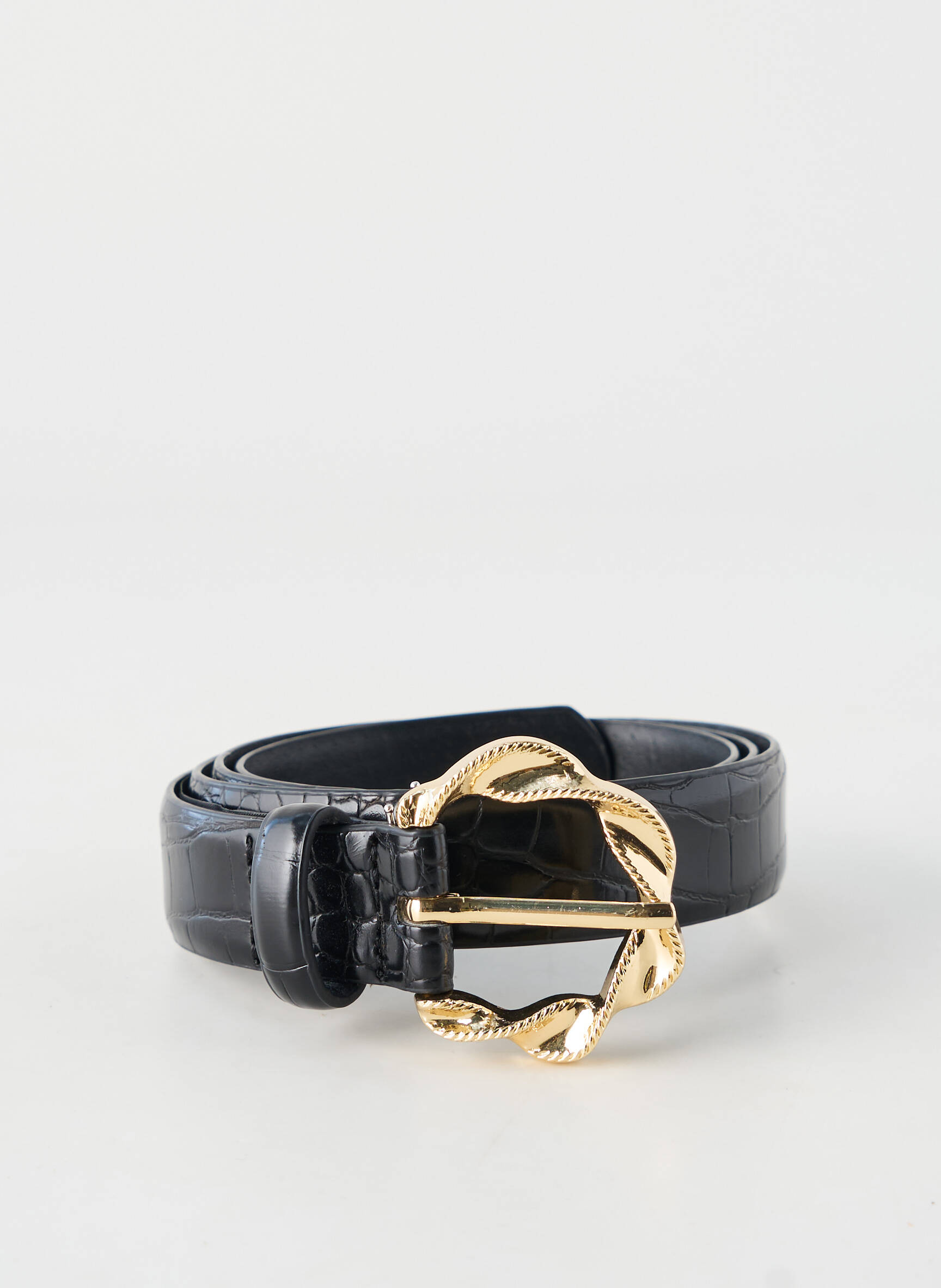 Craquez pour cette ceinture ONLY pour femme à prix mini, parfaite pour ajouter une touche d’élégance à toutes vos tenues grâce à son effet croco noir et sa boucle dorée au design travaillé. Un accessoire chic et tendance à petit prix, idéal pour sublimer votre style sans vous ruiner.