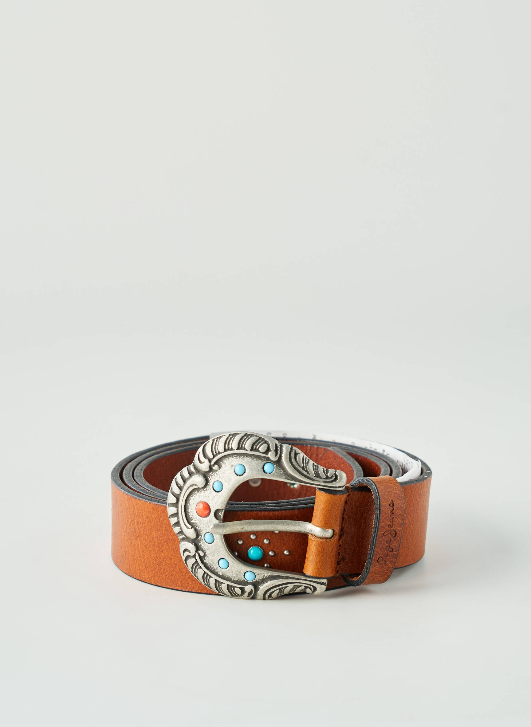 Craquez pour cette ceinture PEPE JEANS pour femme à petit prix, parfaite pour ajouter une touche bohème et tendance à toutes vos tenues tout en faisant une belle économie. Son cuir lisse coloris camel s’associe à une boucle travaillée esprit western incrustée de petites touches colorées, offrant un style original et raffiné sans se ruiner.