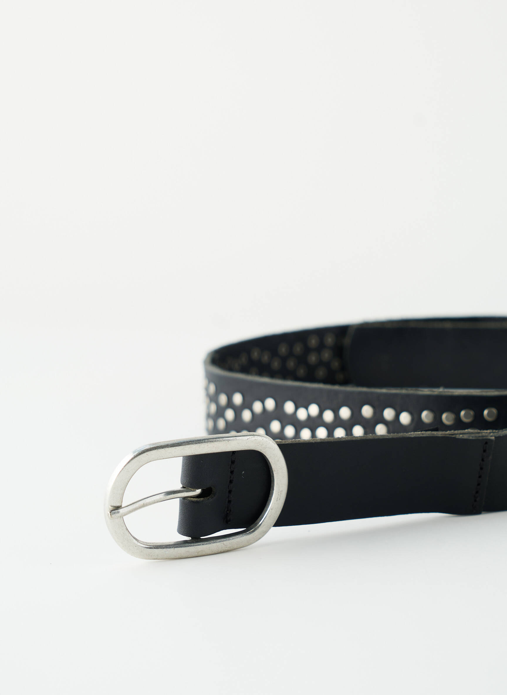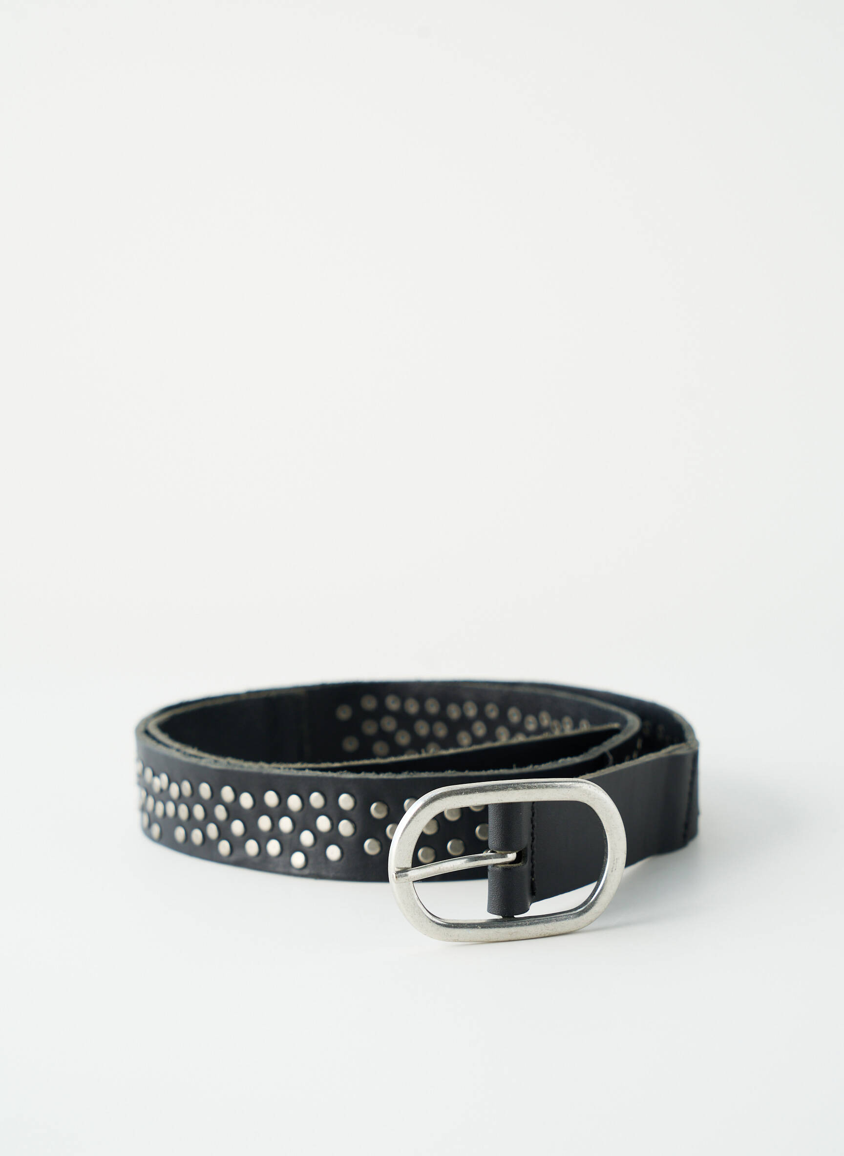Profitez d'une affaire exceptionnelle avec cette ceinture PIECES pour femme, un accessoire tendance qui apporte une touche rock à toutes vos tenues grâce à son cuir noir orné de petits rivets métalliques et sa boucle argentée élégante, le tout à prix mini pour un look stylé sans compromis sur votre budget.