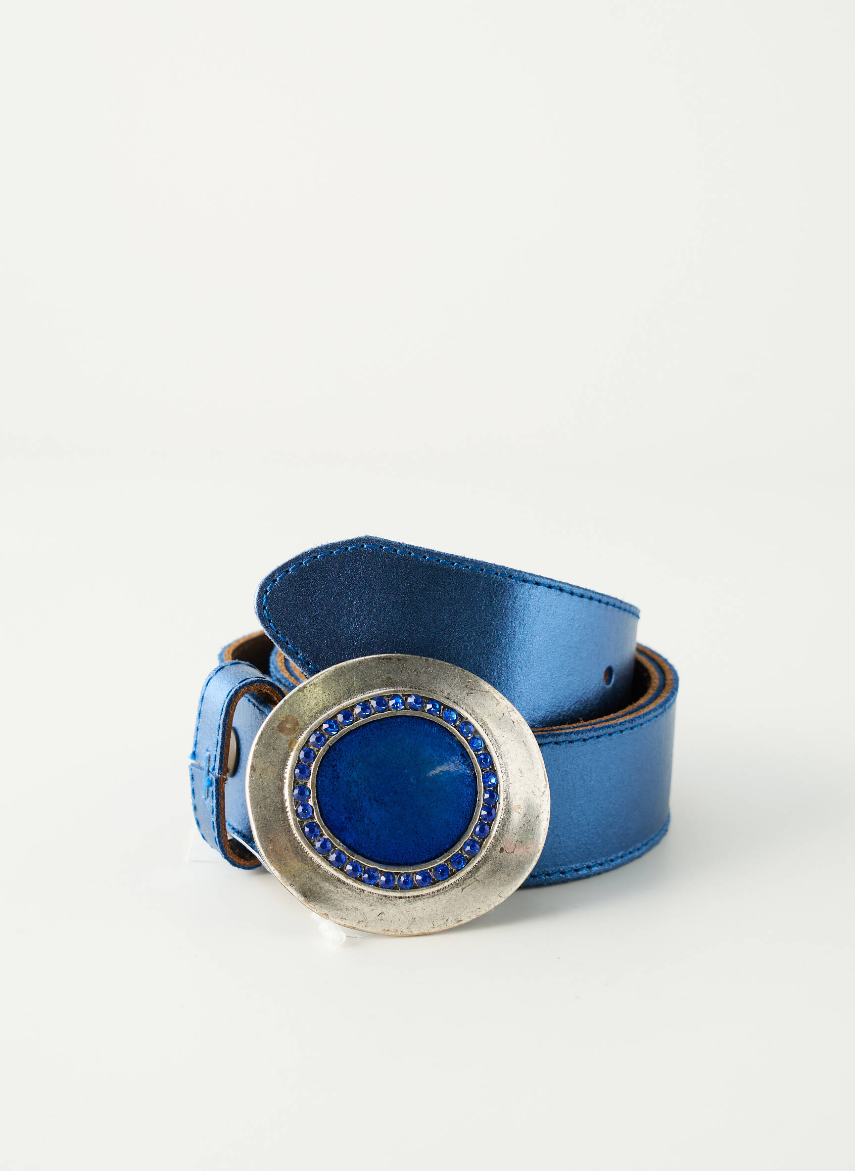 Craquez pour cette ceinture W.IT.E pour femme, une occasion à ne pas manquer pour ajouter une touche d’originalité à petit prix à votre garde-robe. Son cuir bleu profond est parfaitement rehaussé par une large boucle ronde argentée habillée de détails bleutés, ce qui en fait l’accessoire idéal pour offrir du style à vos tenues tout en maîtrisant votre budget.