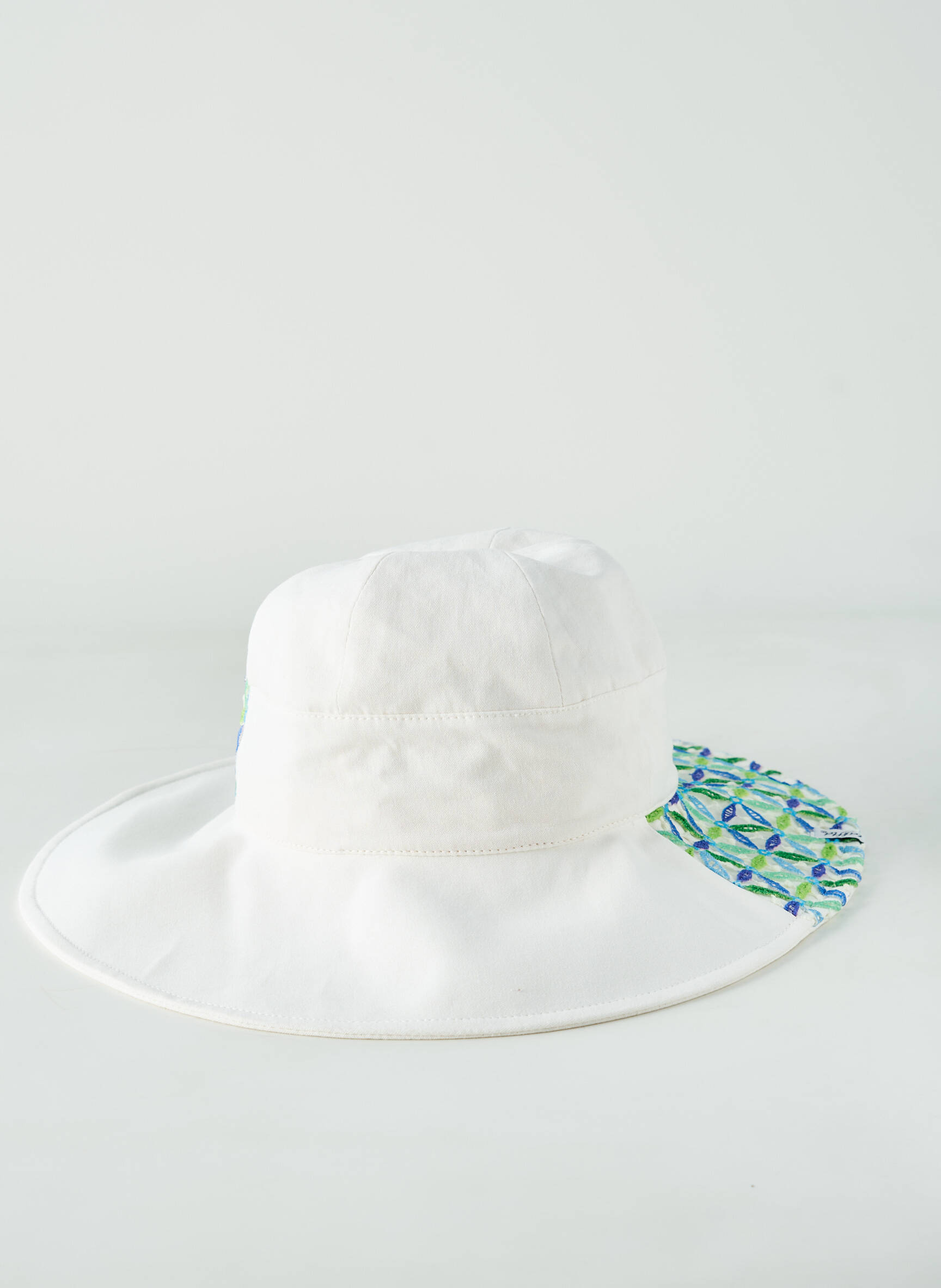 Profitez d’un vrai bon plan avec ce chapeau pour femme signé TAFFTA, parfait pour apporter une touche d’originalité à votre tenue sans vous ruiner. Sa base blanche élégante est sublimée par des motifs géométriques bleu et vert qui habillent la calotte et une partie de la visière pour un style à la fois frais et moderne. Idéal pour celles qui recherchent une pièce tendance à petit prix, ce chapeau allie design unique et look raffiné, parfait pour accessoiriser vos looks de saison tout en réalisant une belle économie.