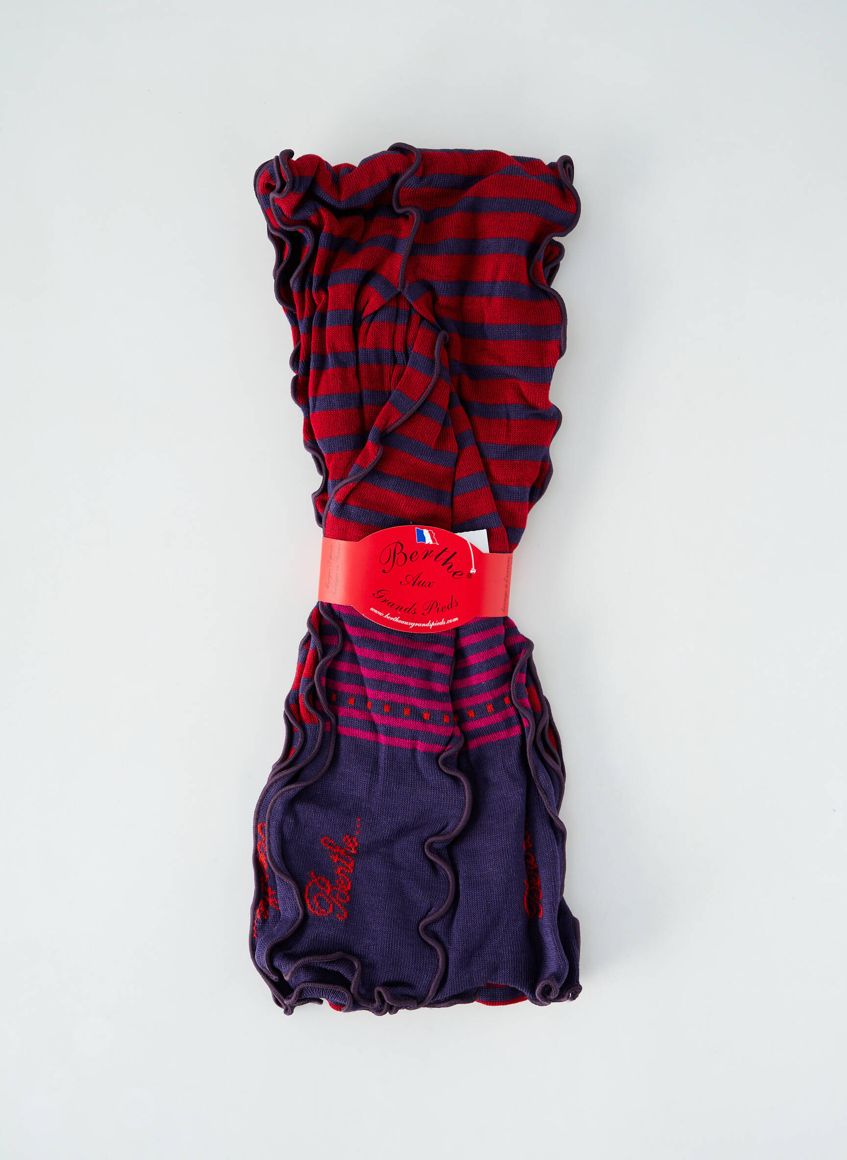 Craquez pour cette écharpe femme signée Berthe Aux Grands Pieds, un véritable bon plan pour apporter une touche d’originalité à votre look sans vous ruiner. Sa maille douce met en valeur un jeu de rayures rouges et violettes, rehaussées de contours légèrement ondulés et d’une discrète broderie qui affirme le style unique de la marque. Idéale pour réchauffer toutes vos tenues avec élégance, cette écharpe colorée au petit prix promet de conjuguer confort et économie tout au long de la saison.