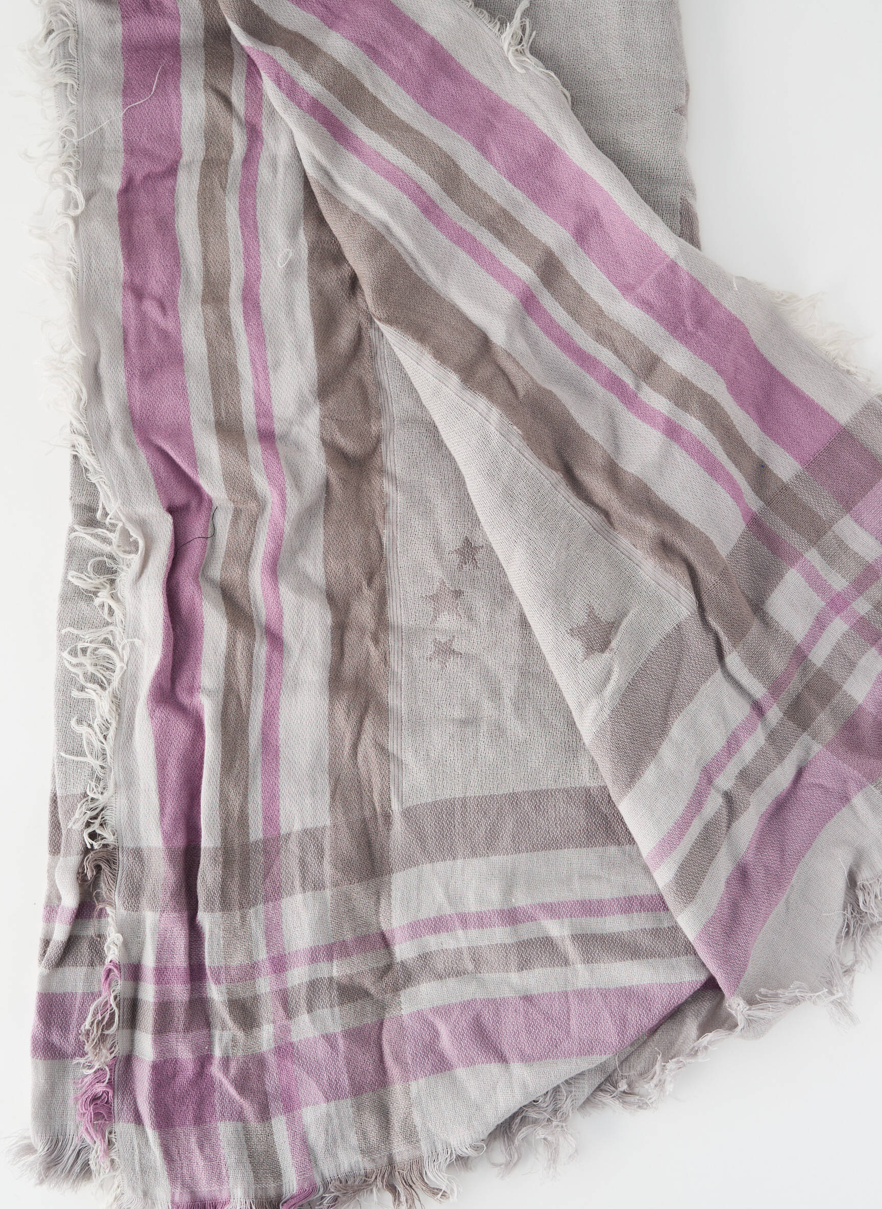 Craquez pour cette écharpe EDC pour femme à prix mini, idéale pour ajouter une touche tendance à votre look sans vous ruiner. Son motif à étoiles et ses rayures dans des tons doux de gris et de rose apportent une note moderne et décontractée, tandis que ses franges fines sur les bords lui donnent un charme authentique. Voilà l’accessoire parfait pour faire des économies tout en restant stylée au quotidien.
