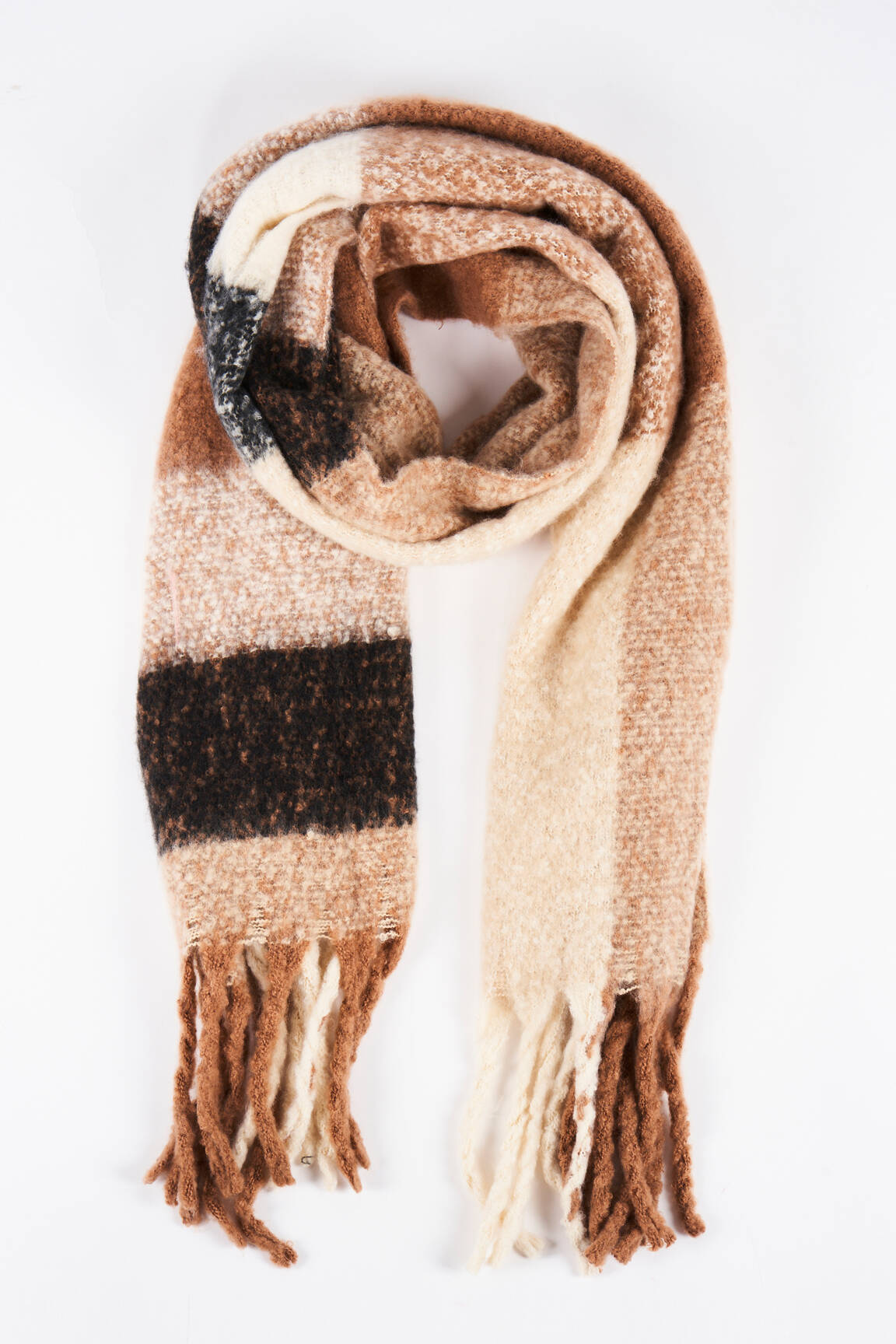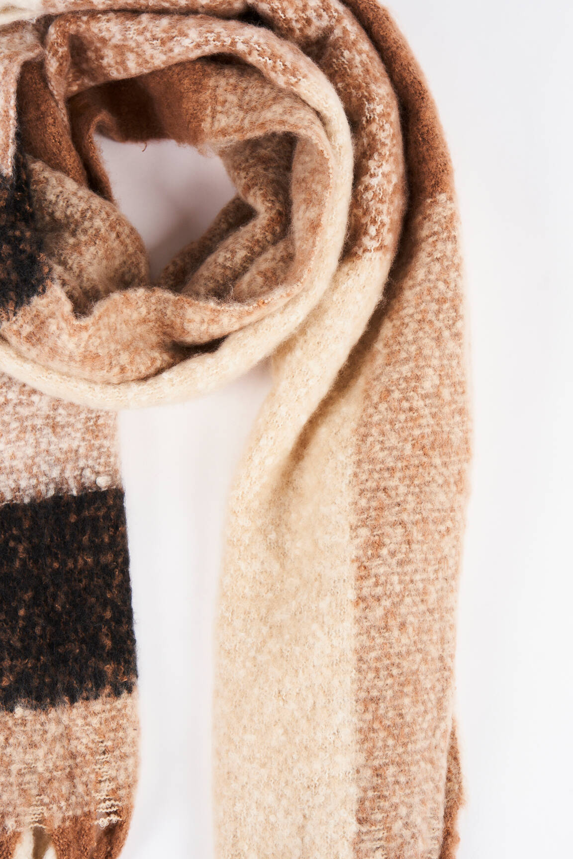Craquez pour cette écharpe HAILYS pour femme, un vrai bon plan pour rester stylée sans se ruiner. Son mélange de teintes chaudes, allant du crème au marron en passant par une touche de noir, apporte du caractère à toutes vos tenues tout en offrant une douceur irrésistible. Sa maille épaisse et moelleuse vous enveloppe de chaleur dès les premiers froids, et ses franges ajoutent une note décontractée pile dans la tendance du moment. Profitez de l’occasion pour accessoiriser votre look à petit prix avec ce modèle à la fois élégant et confortable.