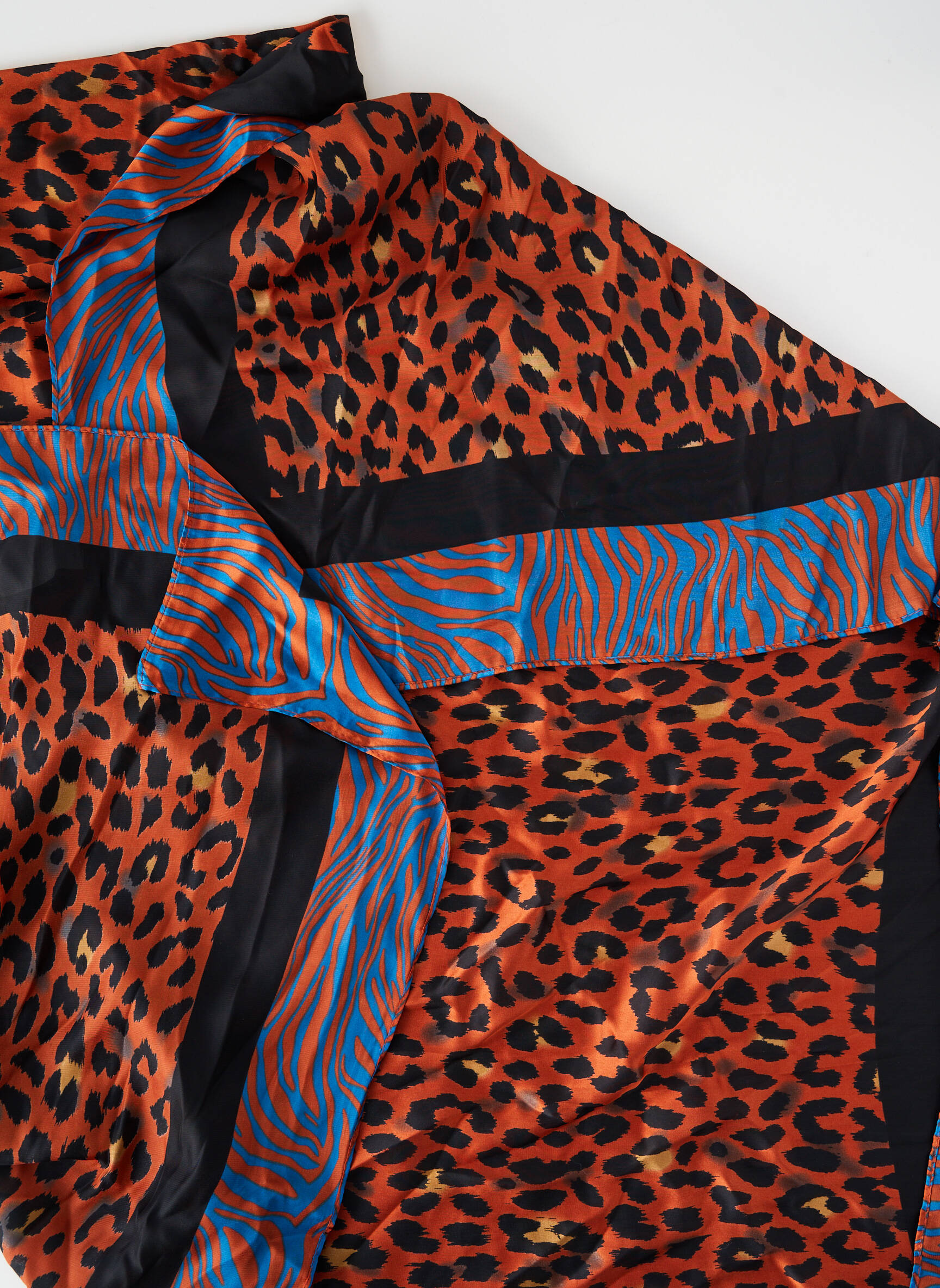 Cet accessoire se porte aussi bien autour du cou que noué sur un sac ou porté dans les cheveux pour ajouter une note vitaminée à votre silhouette. Il s’associe idéalement à une veste en jean ou un manteau uni et apporte une belle touche de contraste à une tenue basique composée d’un t-shirt blanc et d’un pantalon noir.