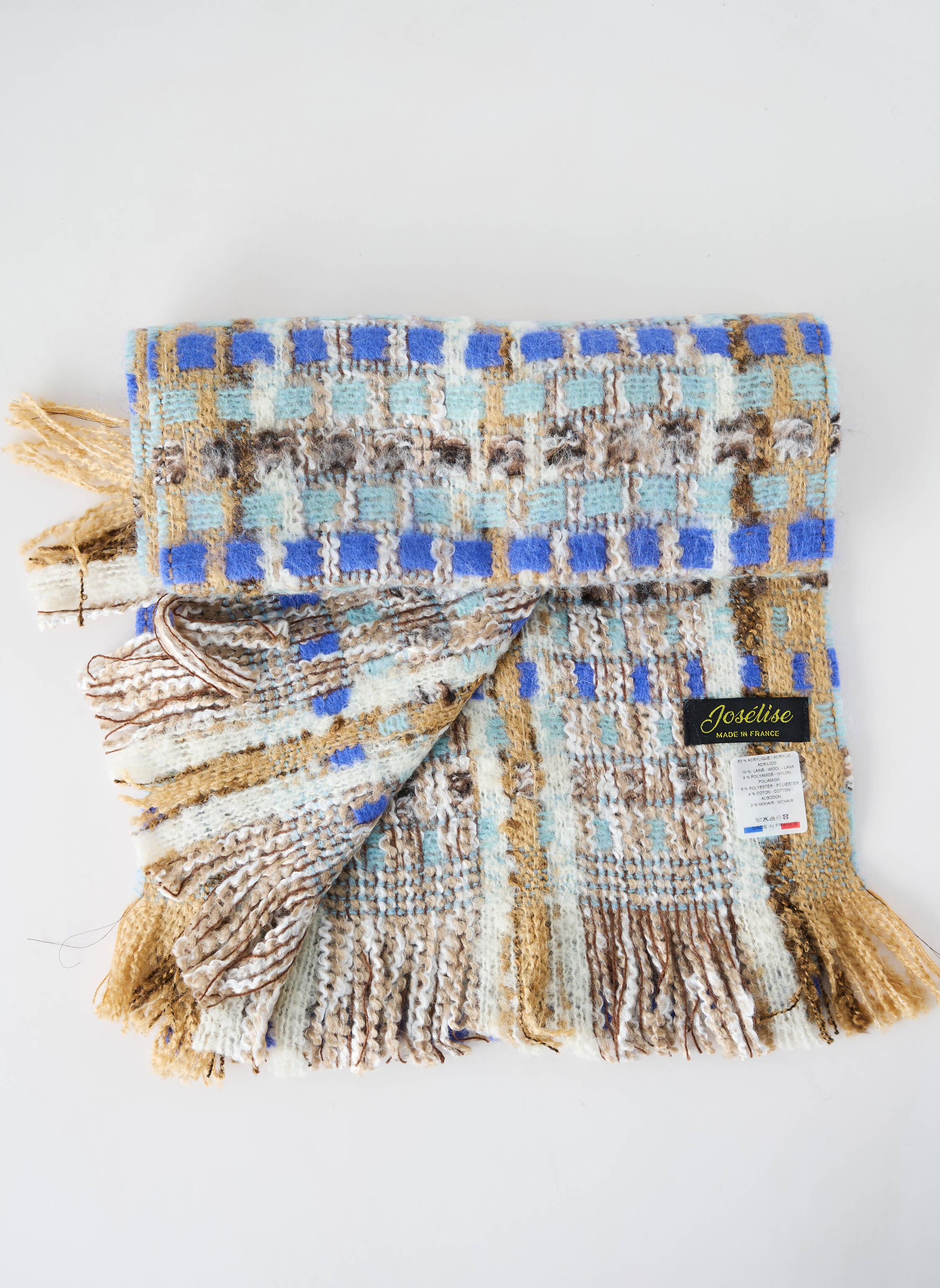 - Composition : 83 % Acrylique, 16 % Laine, 9 % Polyamide, 6 % Polyester, 4 % Coton, 2 % Mohair