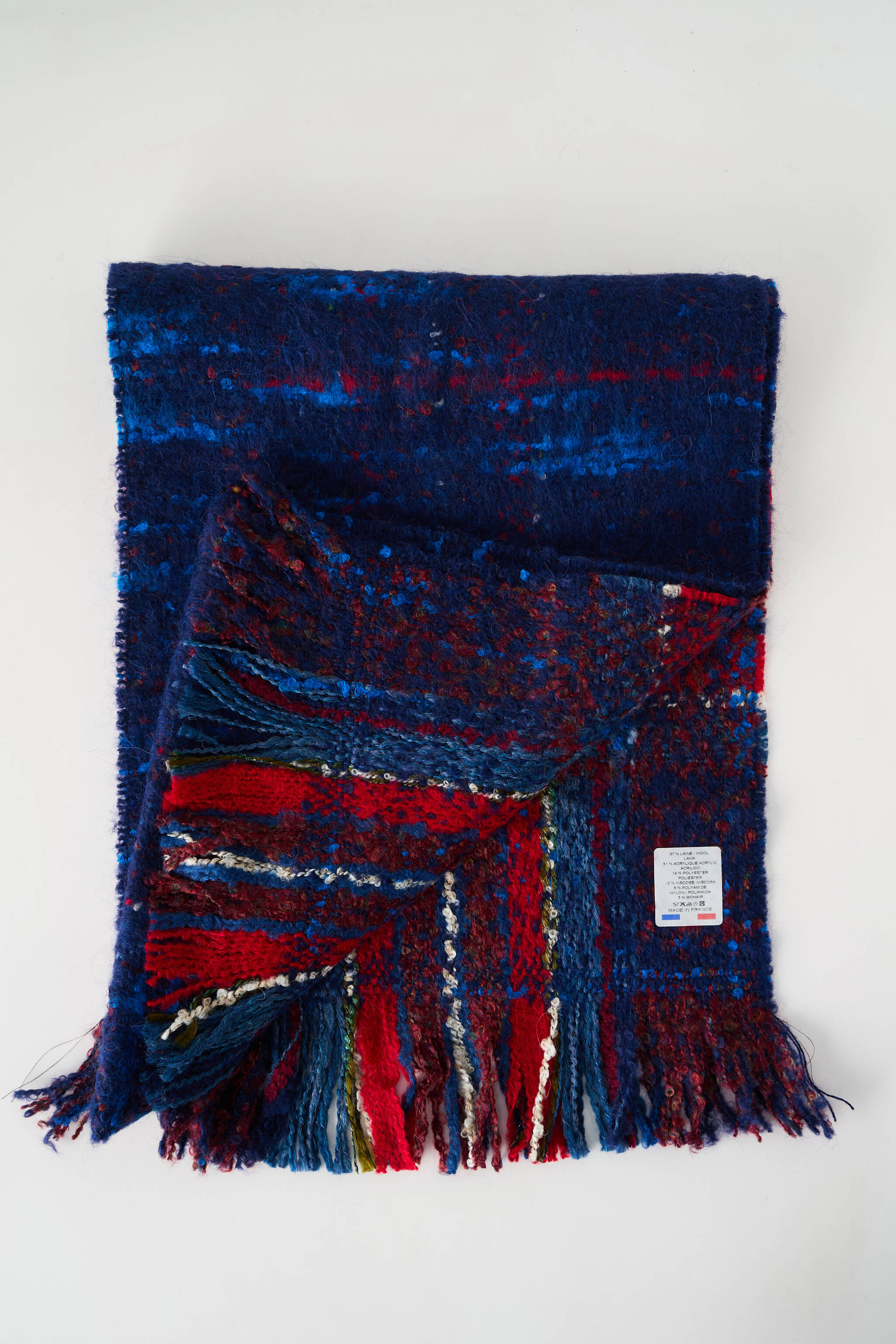 - Composition : 37 % Laine, 31 % Acrylique, 14 % Polyester, 12 % Viscose, 3 % Mohair, 3 % Polyamide
