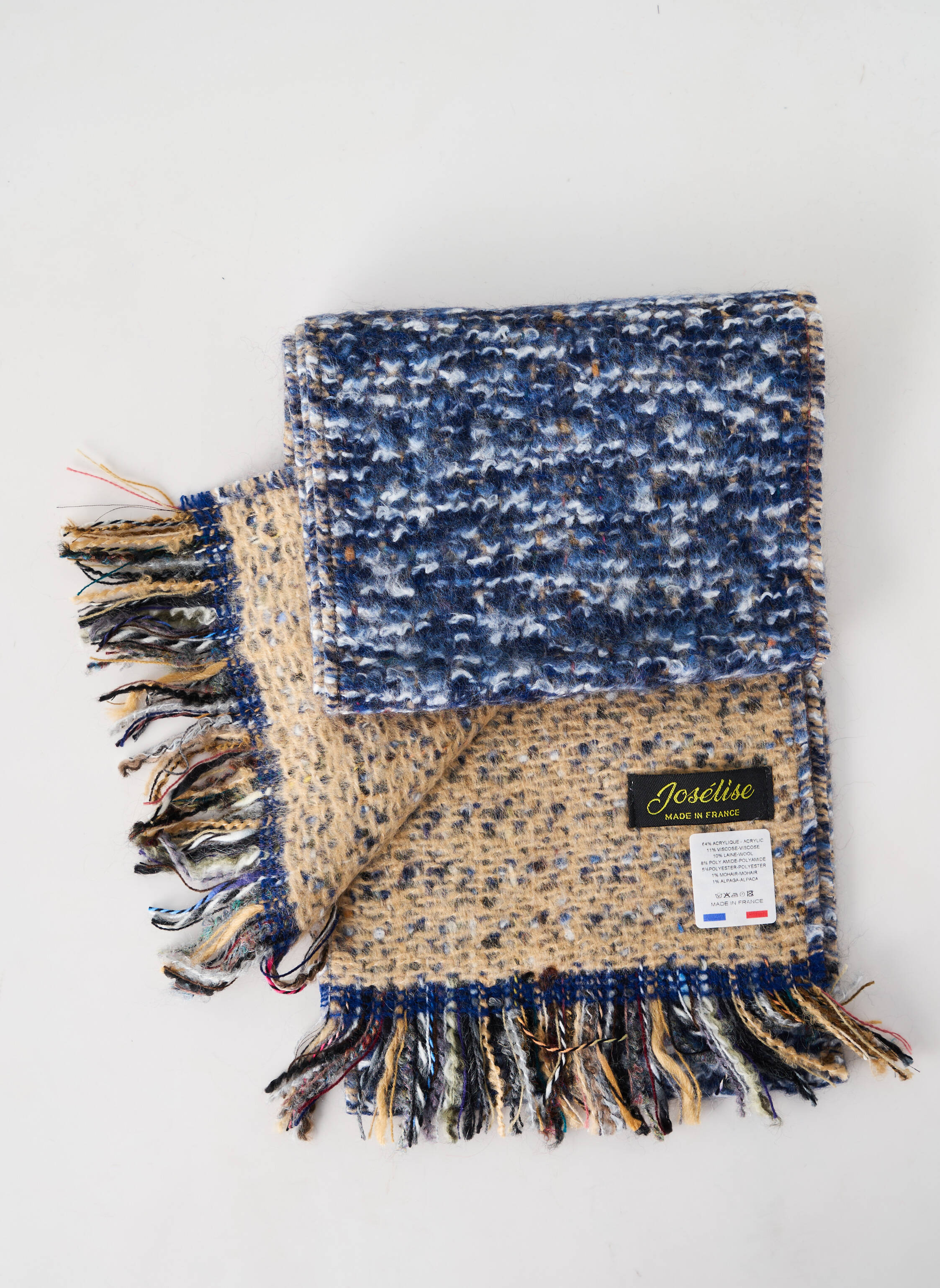 - Composition : 11 % Viscose, 10 % Laine, 8 % Polyamide, 5 % Polyester, 4 % Acrylique, 1 % Alpaga, 1 % Mohair