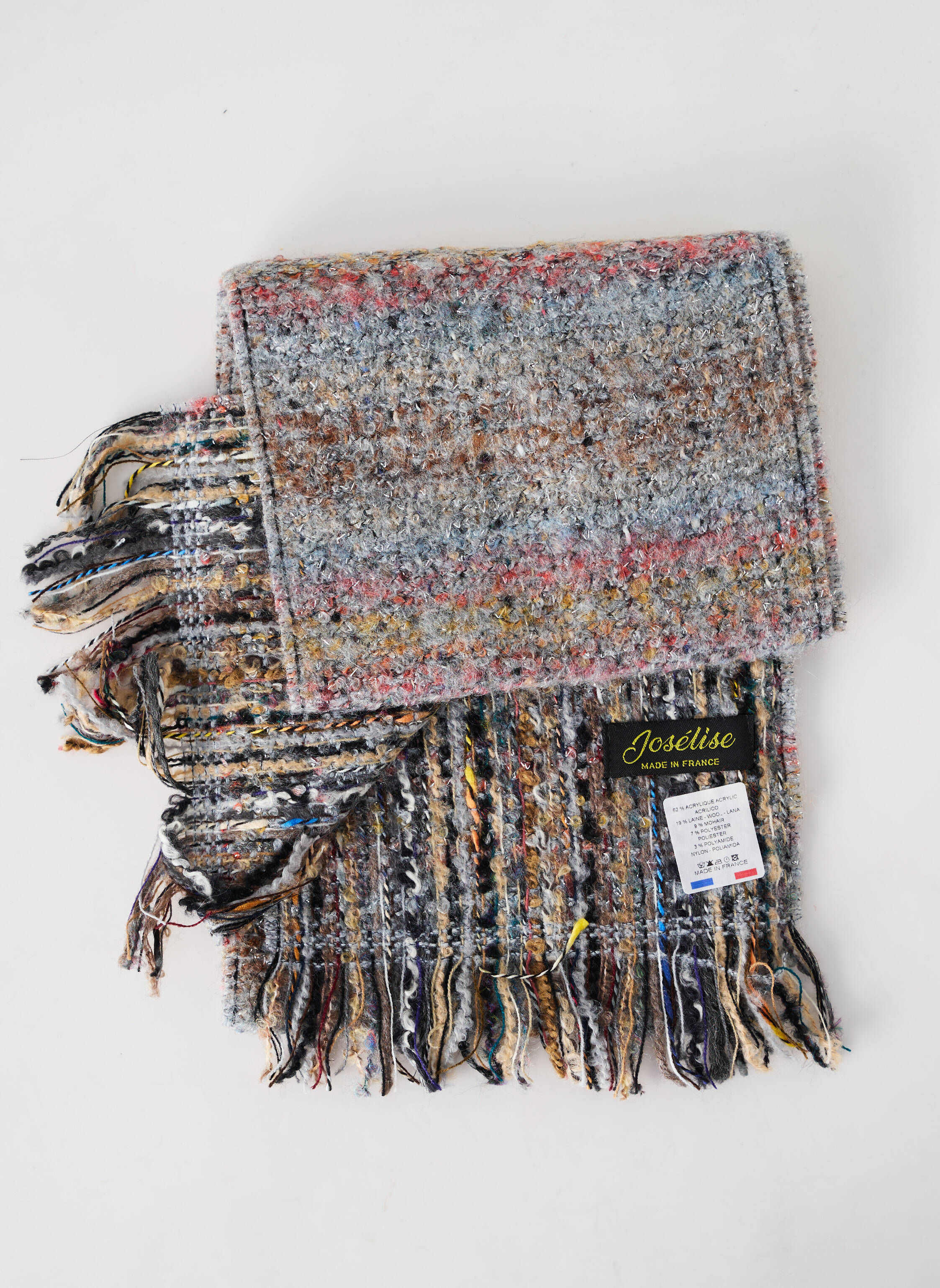 - Composition : 62 % Acrylique, 19 % Laine, 9 % Mohair, 7 % Polyester, 3 % Polyamide