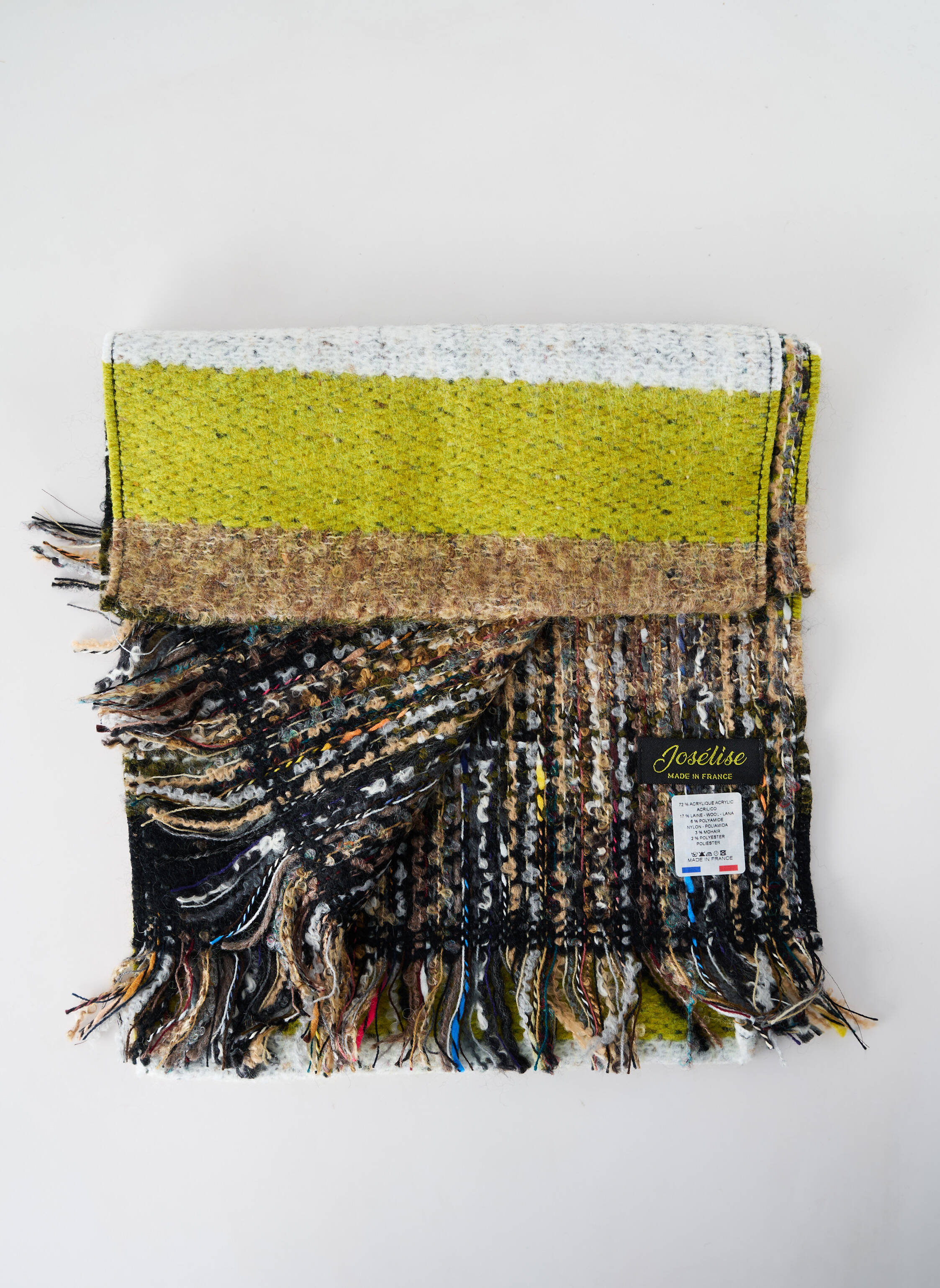 - Composition : 72 % Acrylique, 17 % Laine, 6 % Polyamide, 3 % Mohair, 2 % Polyester