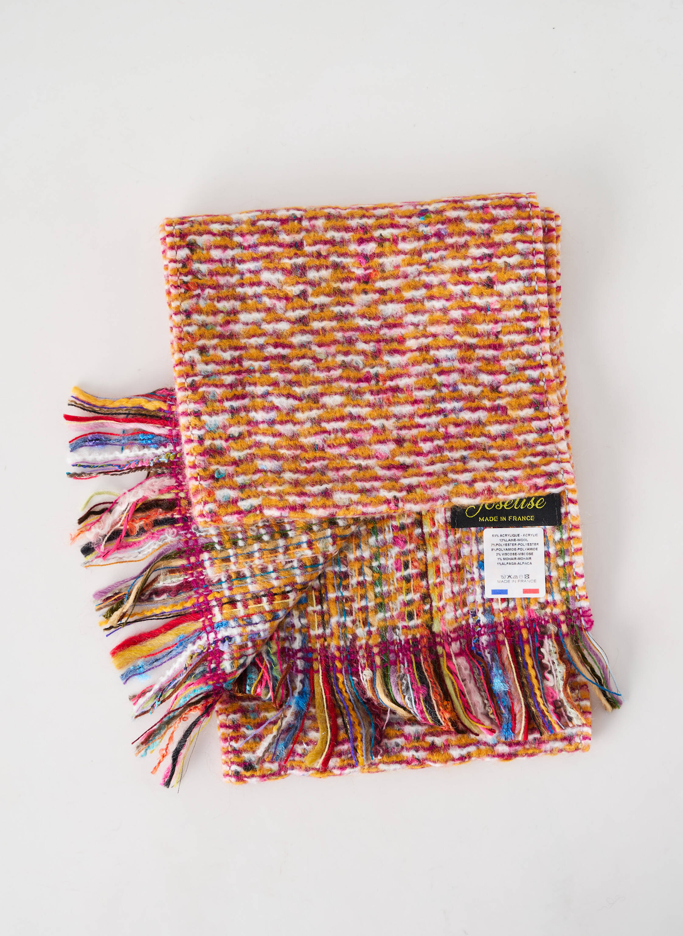 - Composition : 63 % Acrylique, 12 % Laine, 8 % Polyamide, 7 % Polyester, 2 % Viscose, 1 % Mohair, 1 % Alpaga