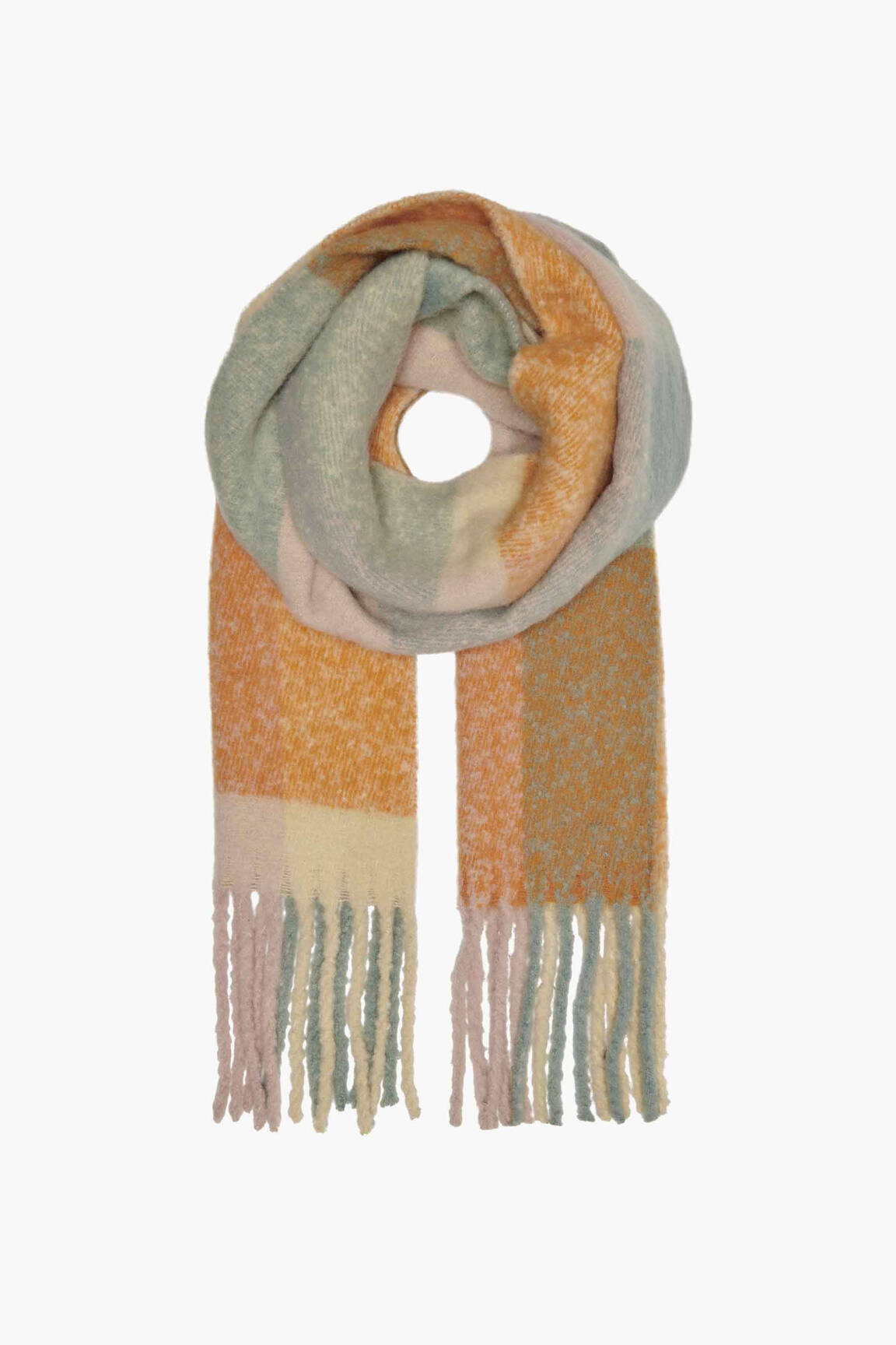 Craquez pour cette écharpe femme de la marque ONLY à petit prix, idéale pour rehausser votre look tout en profitant d'un véritable bon plan. Son motif à larges carreaux mêle des nuances douces de vert d’eau, de jaune moutarde, de beige et de rose, apportant une touche de douceur et d’originalité à toutes vos tenues. Avec ses longues franges et sa maille moelleuse, elle promet chaleur et confort sans compromis sur le style, tout en vous permettant de faire de vraies économies sur votre budget accessoires.