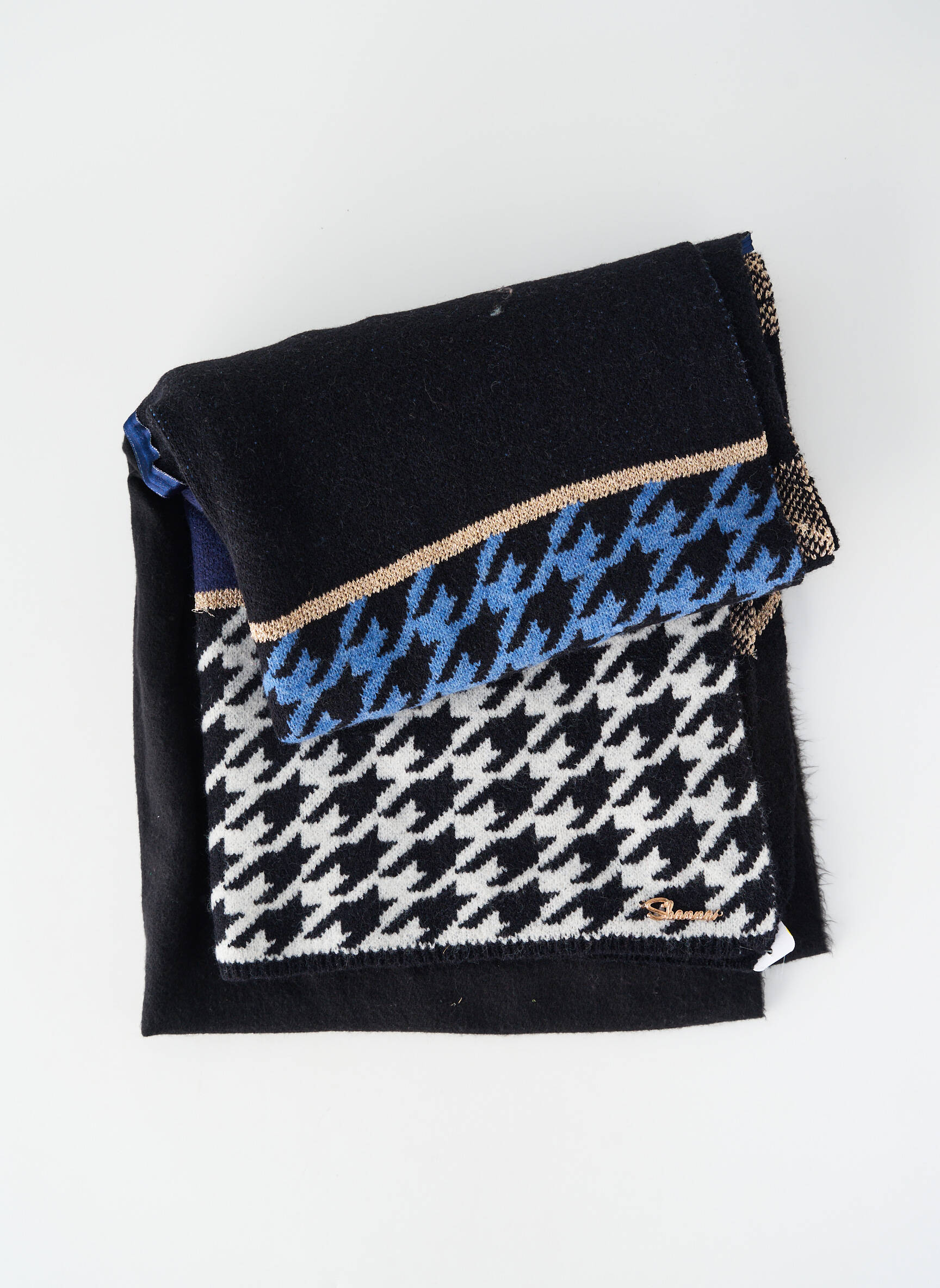 Profitez d’une belle occasion pour sublimer votre look sans vous ruiner avec cette écharpe pour femme signée SHANNA, dont le motif pied-de-poule revisité en noir, blanc et bleu apporte une touche moderne à toutes vos tenues ; un accessoire chic à prix malin, parfait pour ajouter de l’élégance tout en réalisant de vraies économies.