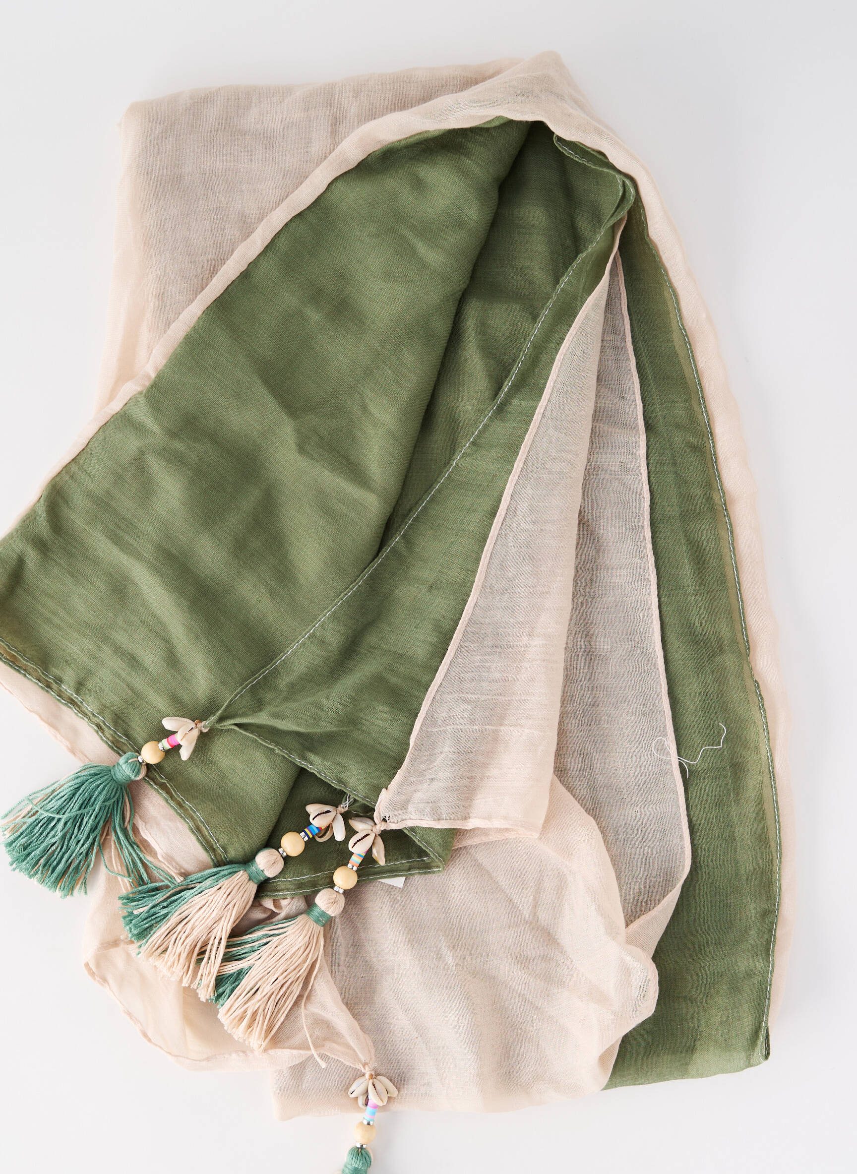 Craquez pour ce foulard signé DODI, une véritable affaire à petit prix pour accessoiriser toutes vos tenues avec élégance. Son tissu léger aux tons doux et naturels s’habille de pompons verts rehaussés de perles pour une touche originale et raffinée, parfait pour apporter du style sans se ruiner. Ce foulard tendance est le bon plan à ne pas manquer pour donner du peps à votre garde-robe tout en faisant des économies.