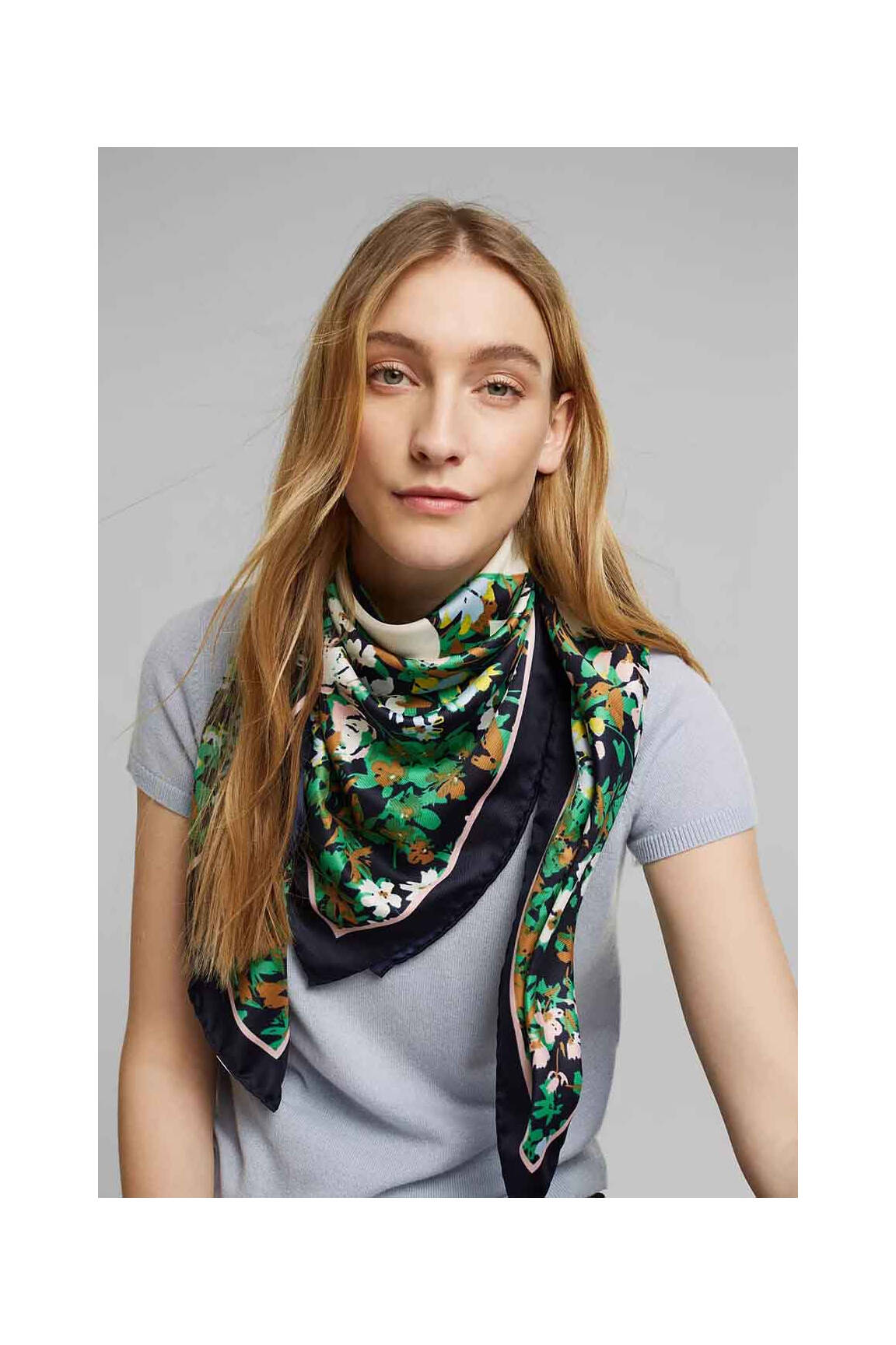 Craquez pour ce foulard ESPRIT pour femme, une véritable aubaine pour rehausser toutes vos tenues sans vous ruiner, grâce à son motif fleuri élégant sur fond foncé, il apporte une touche de fraîcheur et de raffinement tout en profitant d’un prix ultra avantageux.