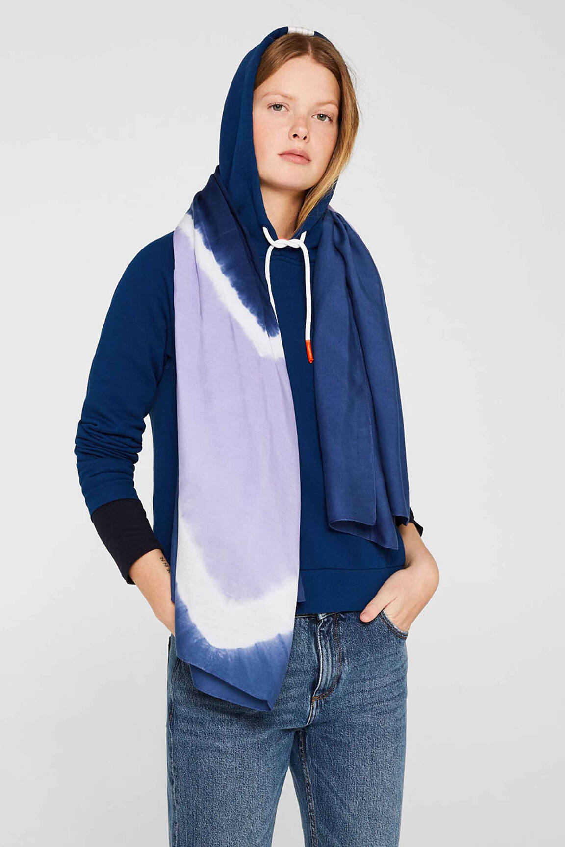 Profitez d’un accessoire tendance à petit prix avec ce foulard pour femme signé ESPRIT, qui mise sur une association élégante de tons bleu foncé et lilas pour apporter une touche de douceur et d’originalité à toutes vos tenues, tout en réalisant de belles économies grâce à notre offre déstockage.