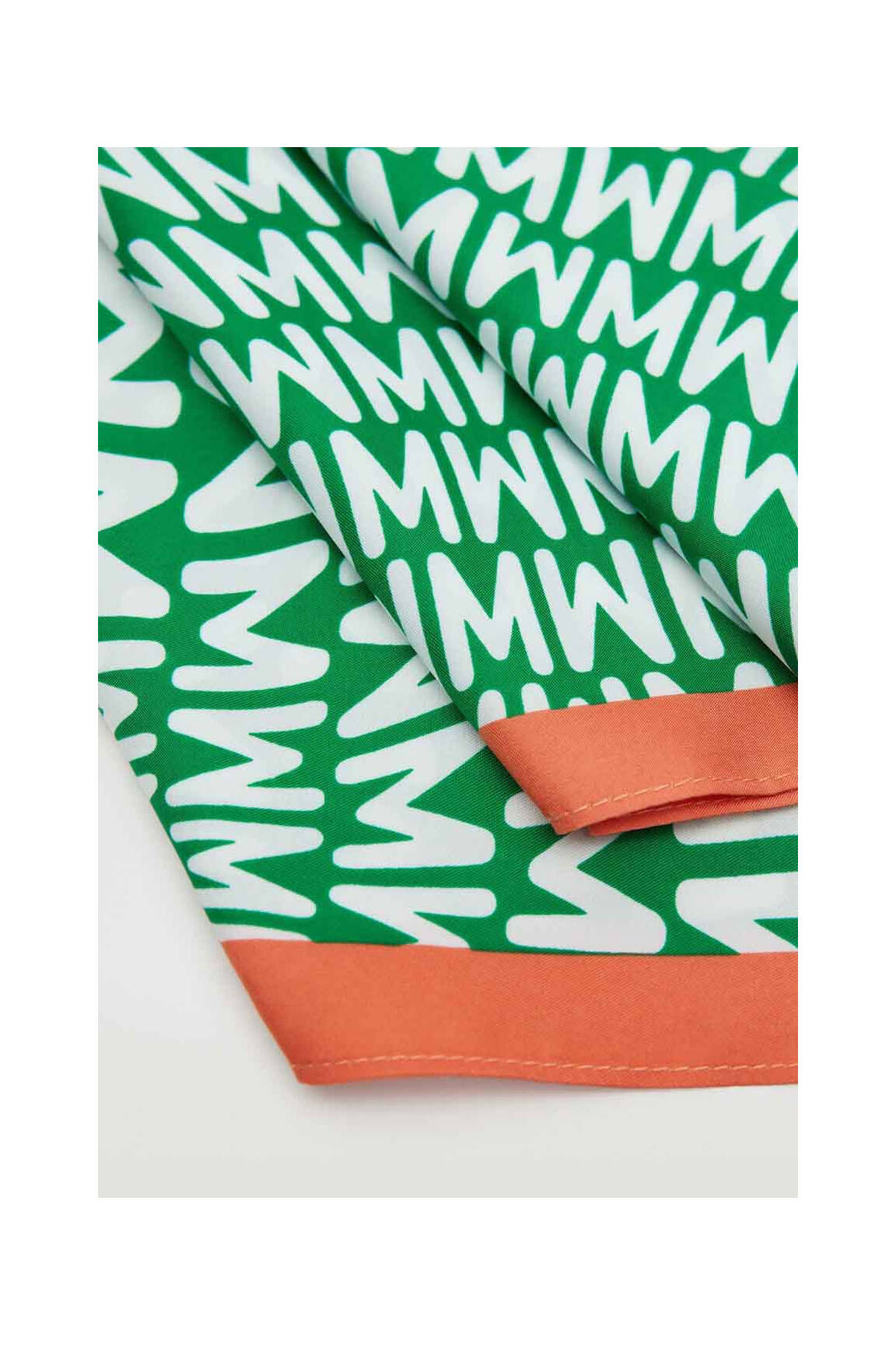 Craquez pour ce foulard MANGO pour femme à prix mini, une véritable aubaine pour apporter une touche créative et moderne à votre tenue?! Son imprimé graphique vert et blanc dynamisé par une bordure orangée rend ce foulard aussi tendance que facile à associer, idéal pour accessoiriser vos looks sans vous ruiner.