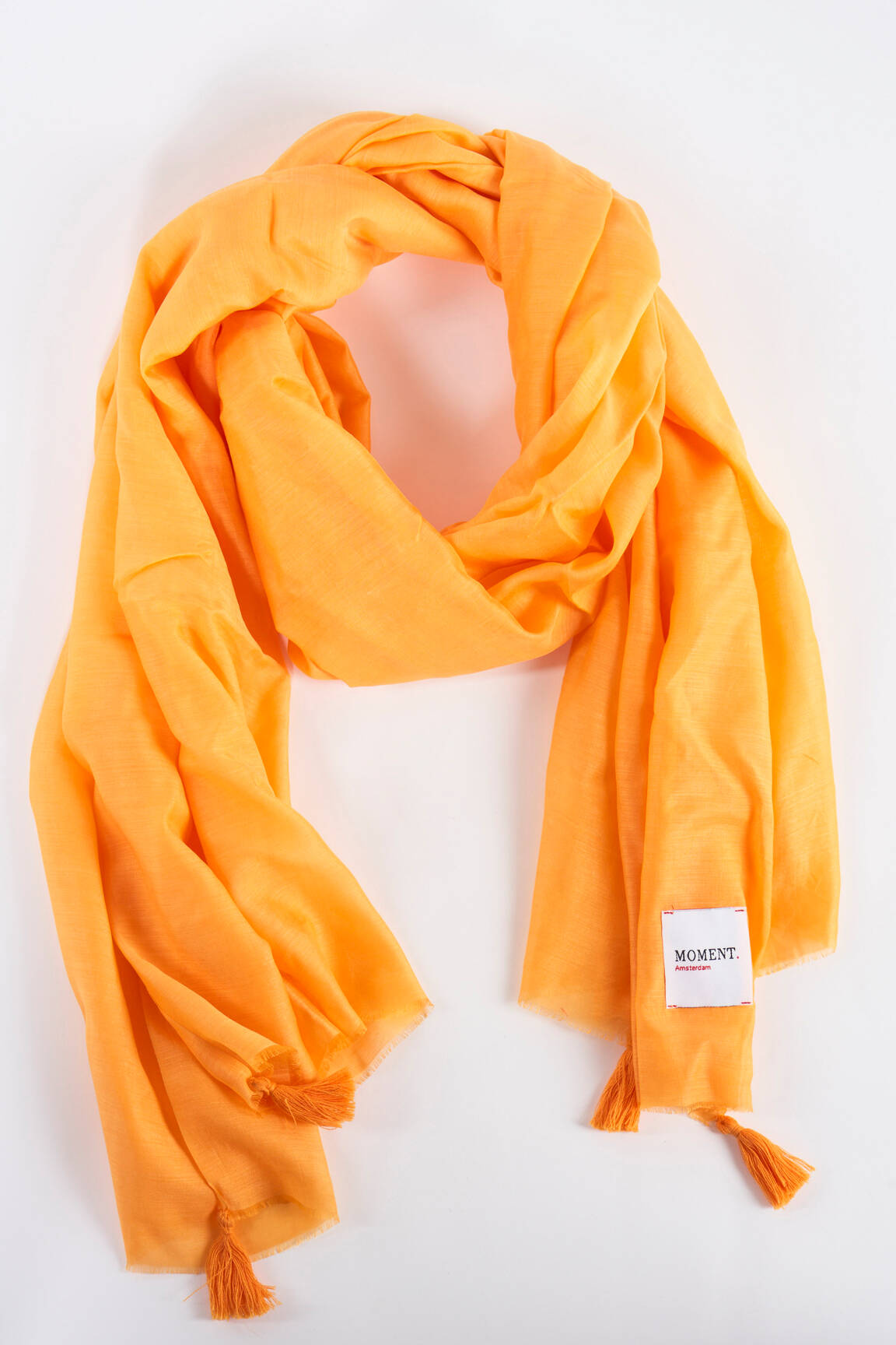 Égayez votre look avec ce chouette foulard orange MOMENT. Portez-le pour attirer les regards ou comme accessoire pour compléter votre tenue.. Composition : 75% modal, 25% cupro