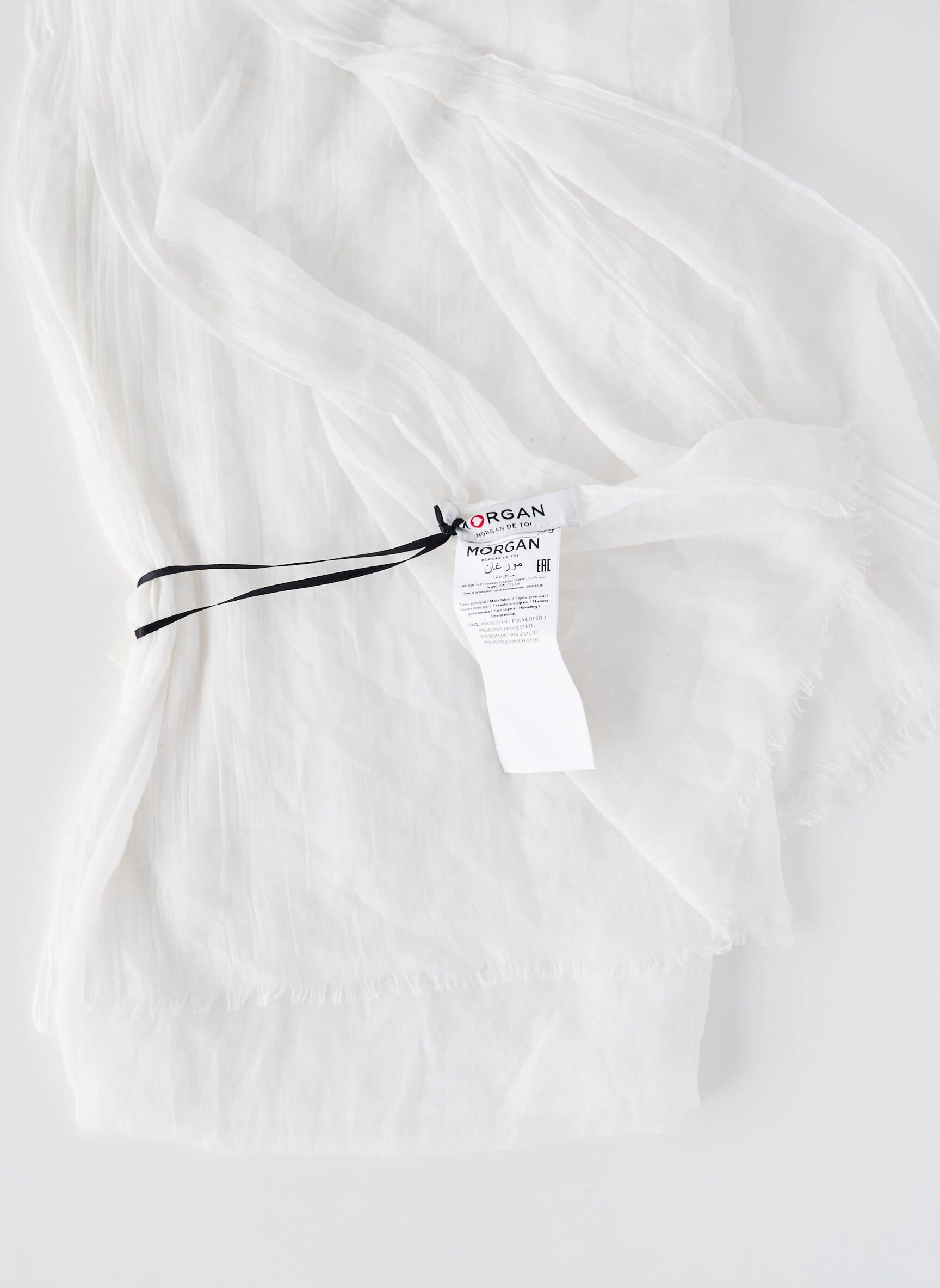 Optez pour l’élégance à petit prix avec ce foulard blanc de la marque MORGAN, un accessoire intemporel qui apporte une touche de fraîcheur et de légèreté à toutes vos tenues tout en profitant d’une vraie bonne affaire. Sa texture délicatement froissée et sa finition légèrement effilochée lui confèrent un style moderne et raffiné, parfait pour sublimer vos looks de tous les jours sans vous ruiner.