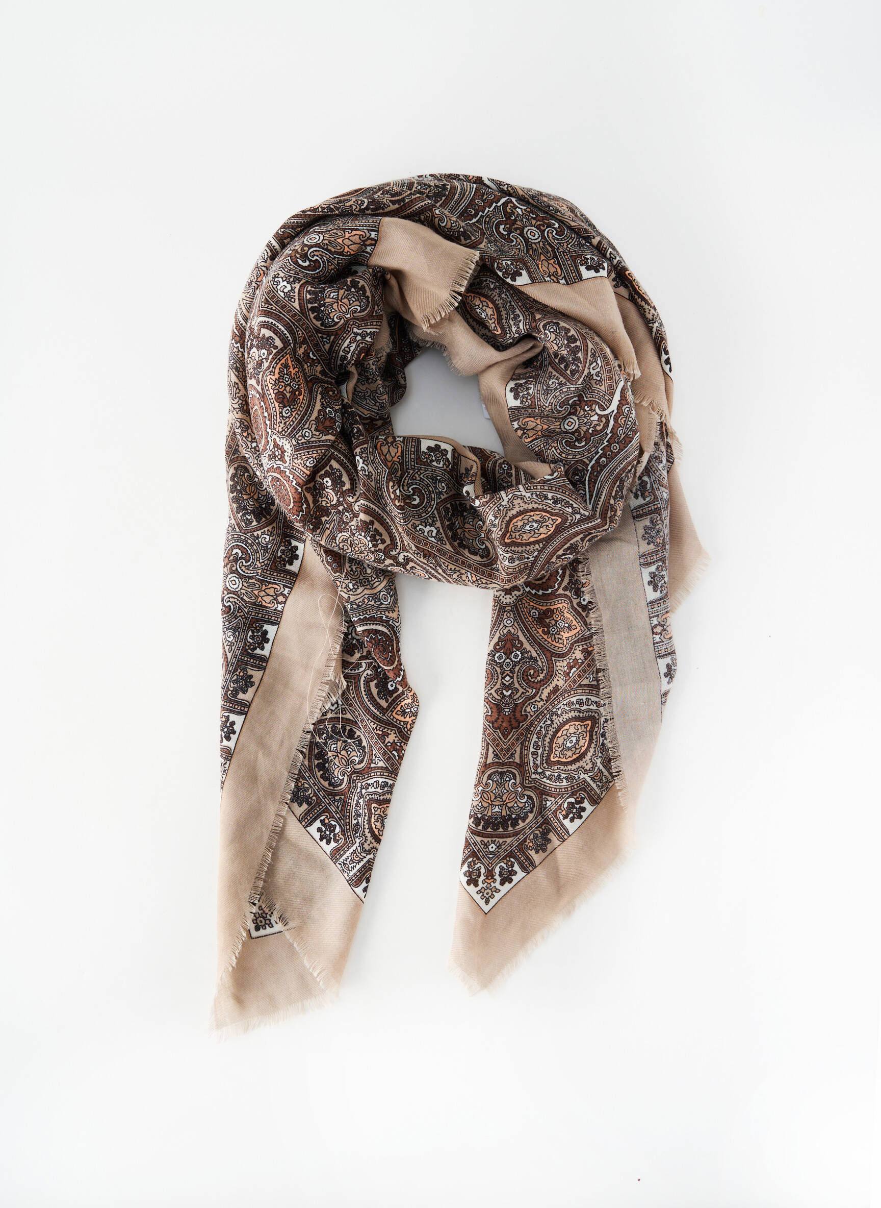 Craquez pour ce foulard pour femme signé MORGAN, une vraie bonne affaire pour accessoiriser vos tenues sans vous ruiner. Son motif paisley délicat et ses nuances de beige et de marron en font un choix élégant et facile à assortir, parfait pour ajouter une touche raffinée à votre look tout en profitant d’un prix mini.