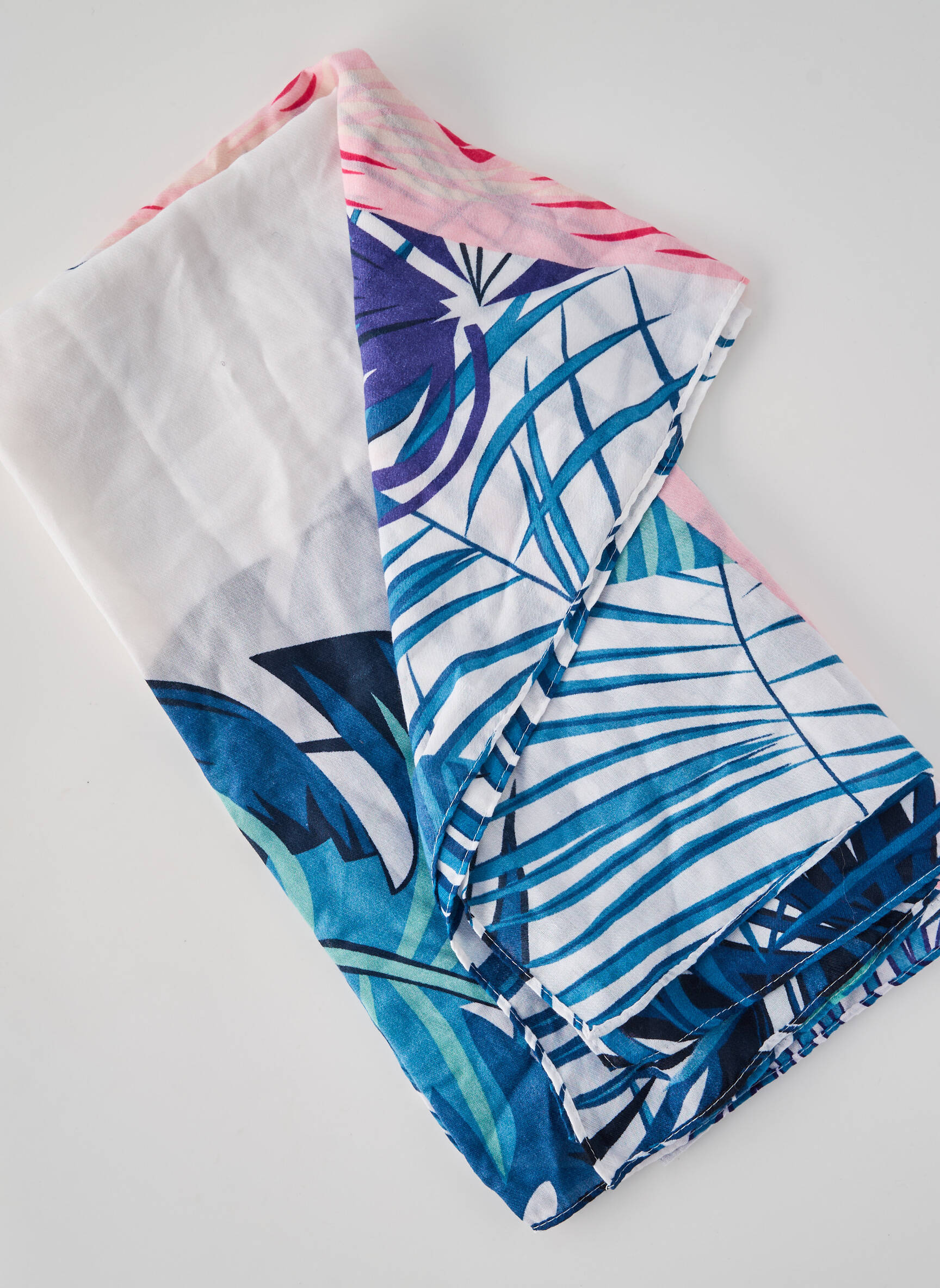 Profitez d’une belle affaire avec ce foulard coloré de la marque ONLY, parfait pour ajouter une touche de fraîcheur et de style à votre garde-robe sans vous ruiner, grâce à son motif feuillage aux tonalités bleu, rose et blanc qui illumineront toutes vos tenues de saison.