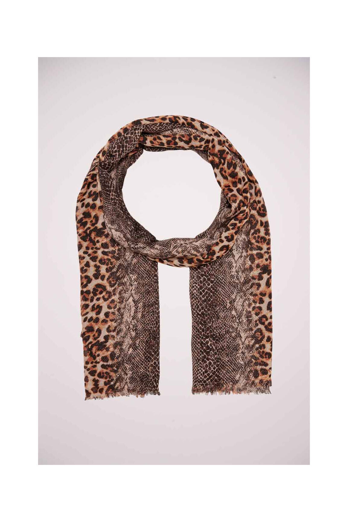 Craquez pour ce foulard signé ONLY, un accessoire tendance à petit prix qui apporte instantanément une touche sauvage à toutes vos tenues grâce à son motif animalier mêlant effet léopard et python ; c’est le bon plan idéal pour renouveler votre style sans vous ruiner.