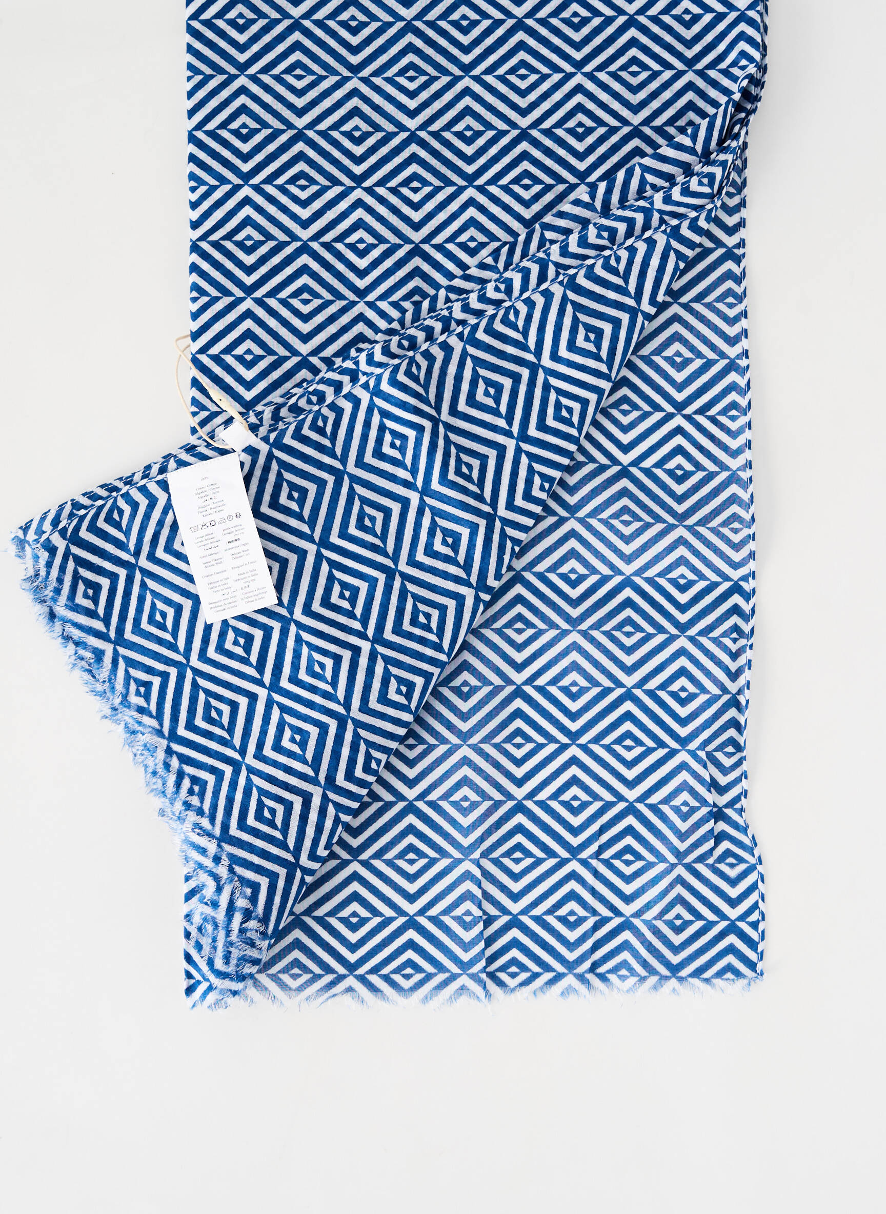 Voici un foulard PALME pour femme qui allie style graphique et petit prix, idéal pour donner une touche tendance à vos tenues sans vous ruiner. Son motif géométrique bleu et blanc apporte une belle originalité, parfait pour accessoiriser élégamment vos looks tout au long de l’année, le tout à prix malin.