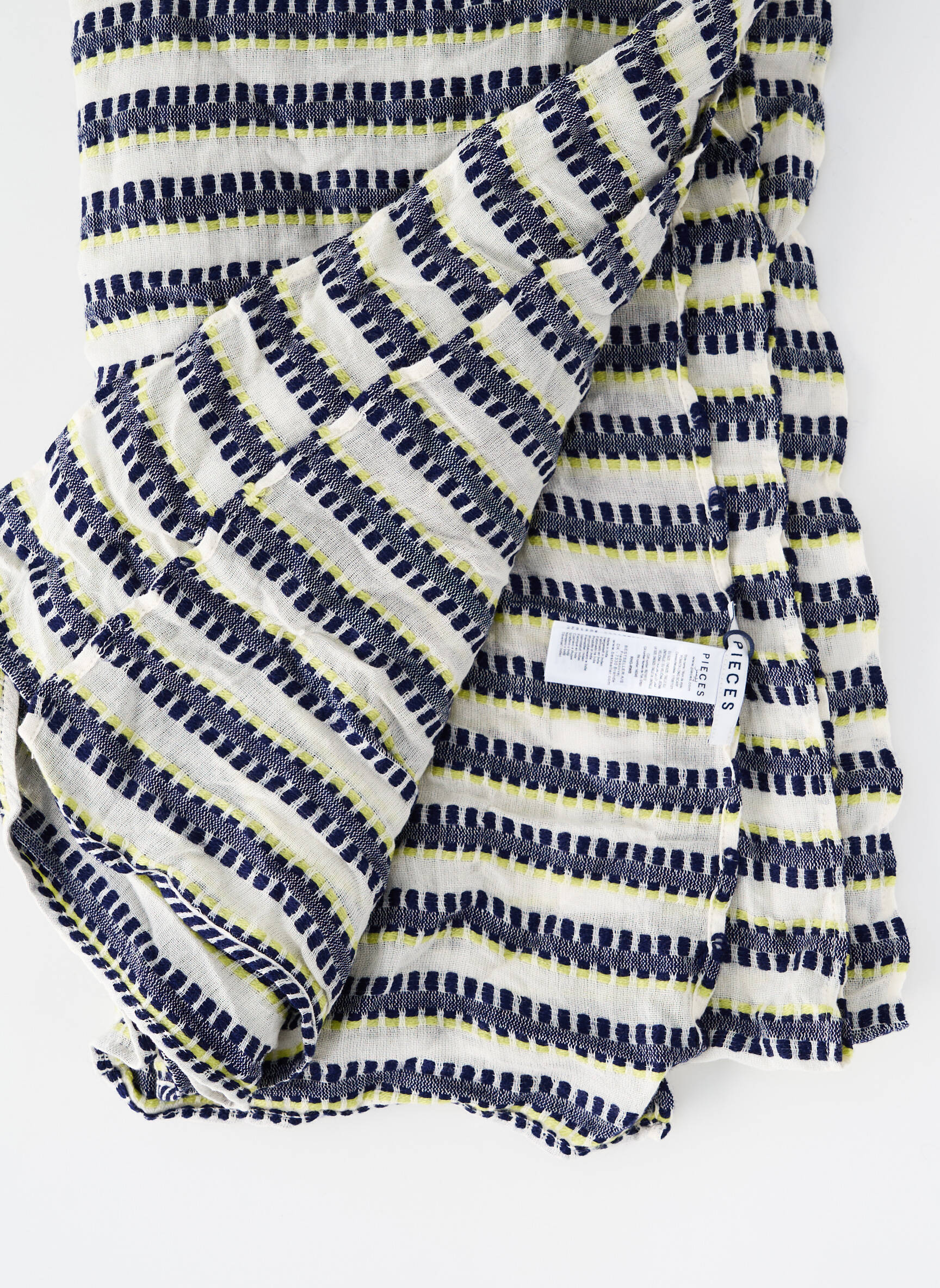 Profitez d’une belle occasion pour accessoiriser vos tenues avec ce foulard PIECES pour femme, un indispensable au motif rayé noir, bleu et jaune sur fond clair, parfait pour ajouter une touche de style à petits prix. Léger et facile à porter, il constitue le bon plan mode à saisir pour rehausser votre look tout en maîtrisant votre budget.