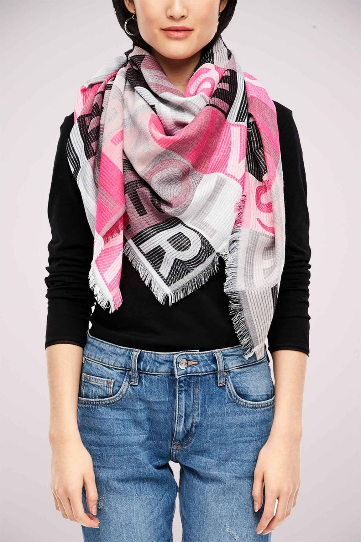 Rien de tel que ce foulard S.OLIVER pour apporter une touche tendance à votre look sans vous ruiner?; son motif graphique mêlant des nuances de rose et de gris, relevé par des finitions à bords frangés, fait de ce modèle un véritable allié pour celles qui souhaitent un accessoire stylé à petit prix.