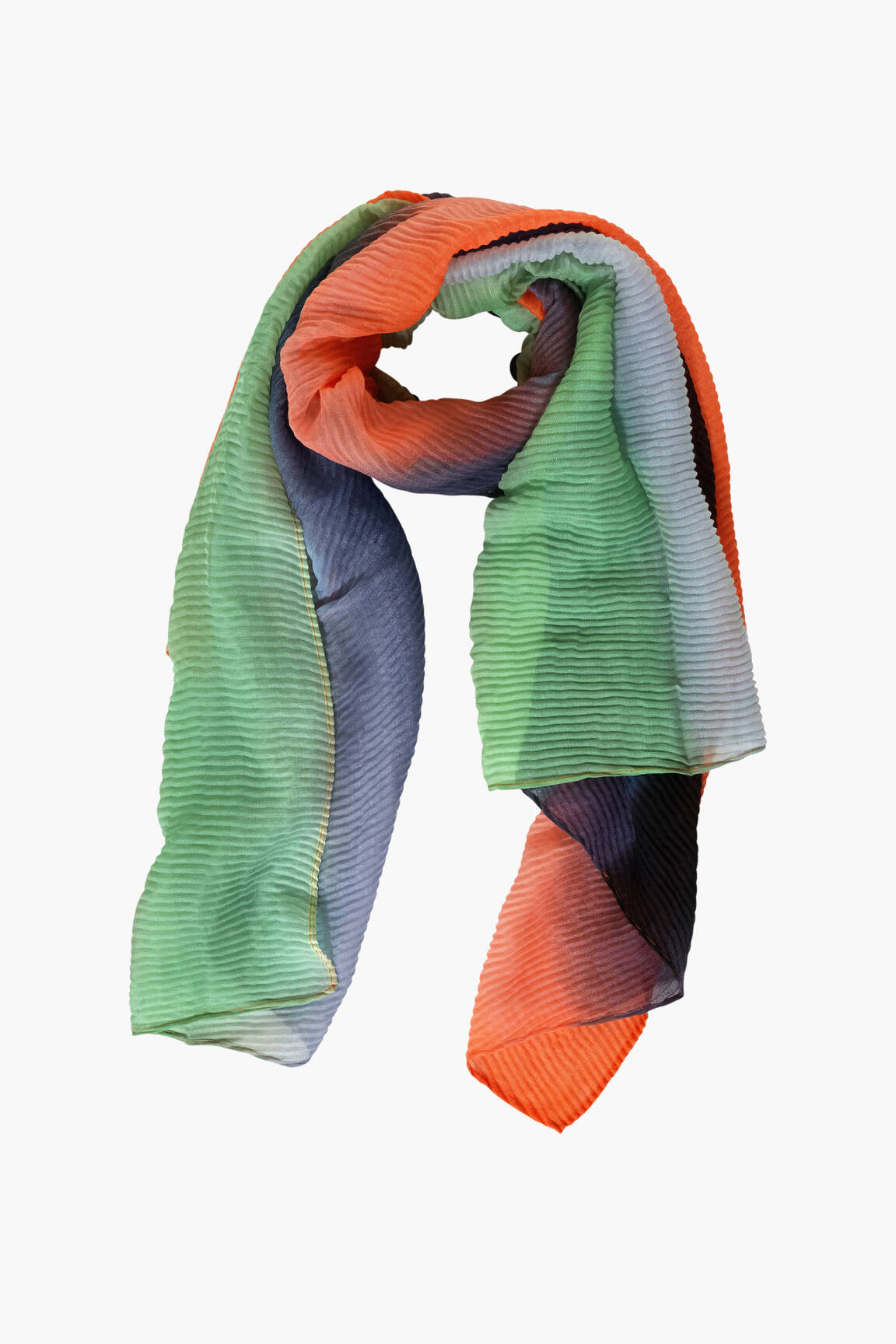 Optez pour une touche de fraîcheur colorée à prix mini avec ce foulard STREET ONE pour femme, parfait pour dynamiser votre garde-robe sans vous ruiner. Son tissu plissé léger met en valeur un superbe dégradé de teintes vives allant du vert au bleu, rehaussé par des nuances orangées, idéal pour accessoiriser vos tenues avec style et originalité tout en profitant d’un véritable bon plan.