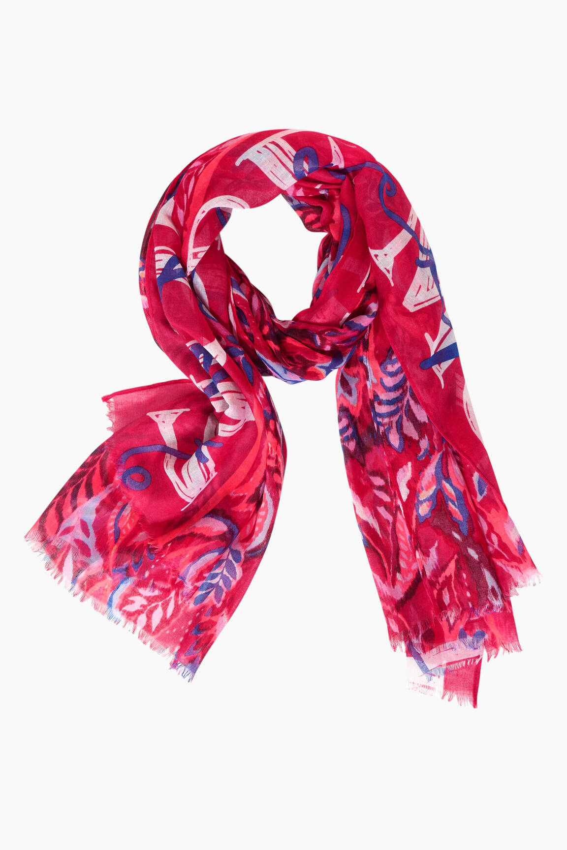 Ce foulard se porte aussi bien autour du cou en un simple nœud pour un look décontracté qu’en version étole sur les épaules lors des soirées plus fraîches. Pour le mettre en valeur, il s’accorde à merveille avec une veste en jean ou un trench clair et complète parfaitement une tenue composée d’un haut uni, qu’il soit blanc ou bleu marine, et d’un jean ou d’une jupe simple pour laisser toute la place à ses motifs éclatants.