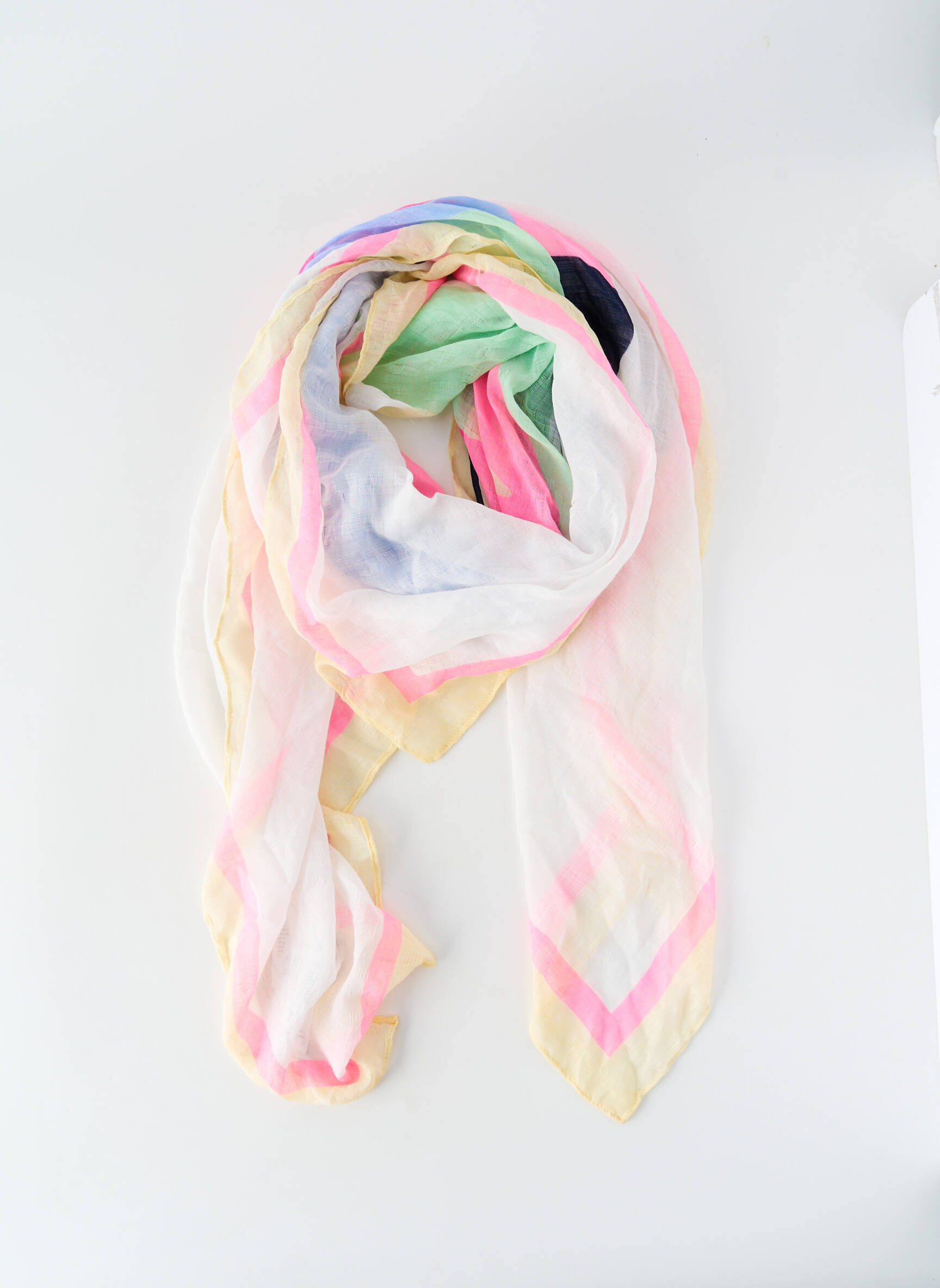 Craquez pour ce foulard TOM TAILOR pour femme, une pièce idéale pour sublimer votre tenue à petit prix. Son tissu léger et aérien mise sur des couleurs pastel délicatement mêlées de rose, jaune, vert et bleu, avec un joli effet de transparence, parfait pour apporter une touche de fraîcheur et d'élégance à votre look sans vous ruiner. Profitez dès maintenant de ce bon plan mode et offrez-vous une accessoire chic à prix doux.