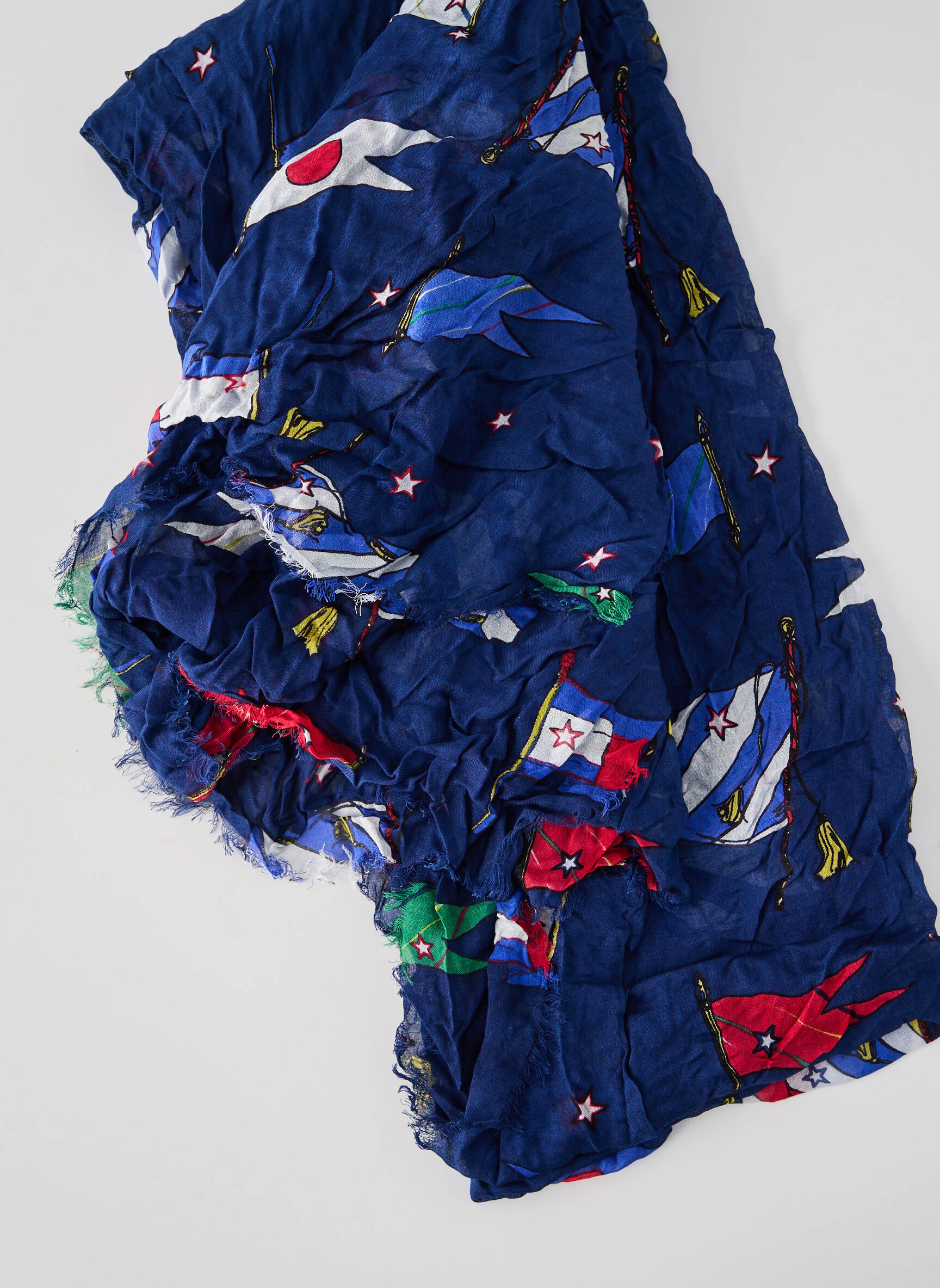 Profitez d'une affaire exceptionnelle avec ce foulard TOMMY HILFIGER pour femme, proposé à prix mini pour accessoiriser vos tenues avec style. Son coloris bleu profond, rehaussé de motifs de drapeaux colorés et d'une finition légèrement effilochée, apporte une touche originale et dynamique à toutes vos envies de look, tout en profitant d'un petit prix irrésistible pour une marque iconique.