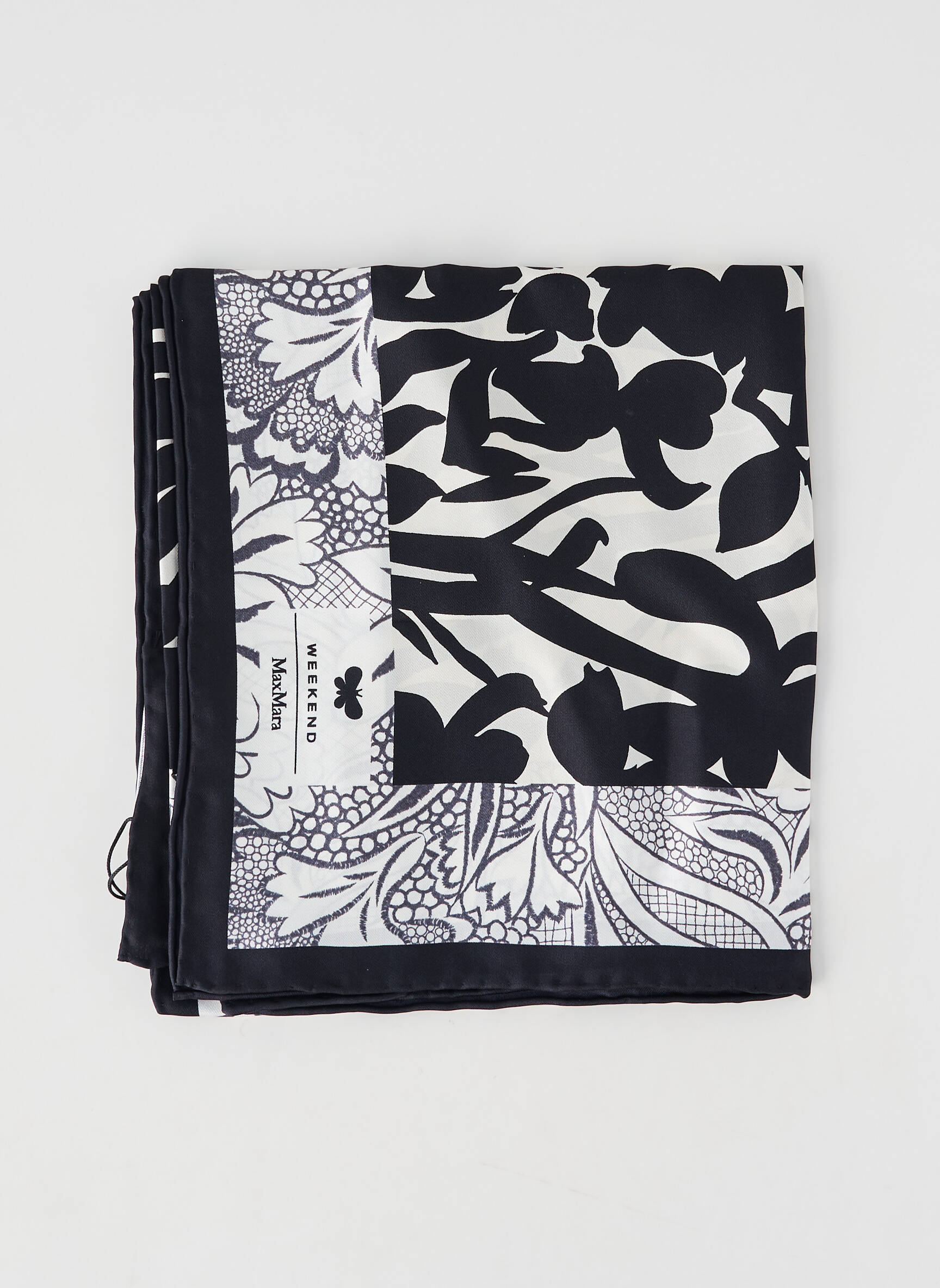 Craquez pour ce foulard Weekend Maxmara pour femme qui offre à petit prix toute l’élégance d’une grande maison, avec son motif floral noir et blanc à la fois graphique et raffiné, parfait pour apporter une touche sophistiquée à votre look sans vous ruiner.
