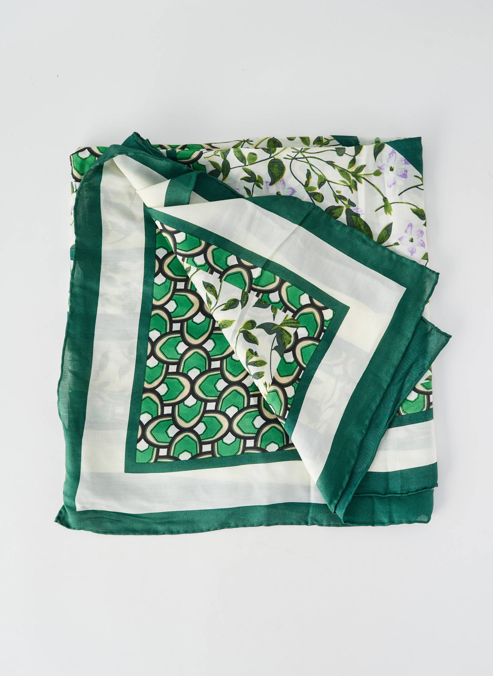 Profitez d’une touche d’élégance à prix doux avec ce foulard WEEKEND MAXMARA pour femme, un accessoire raffiné qui allie fraîcheur et finesse grâce à son motif floral délicat sur fond vert profond rehaussé de touches de blanc lumineux. Idéal pour rehausser toutes vos tenues sans vous ruiner, ce foulard intemporel est le bon plan à saisir pour un style chic et unique au quotidien.