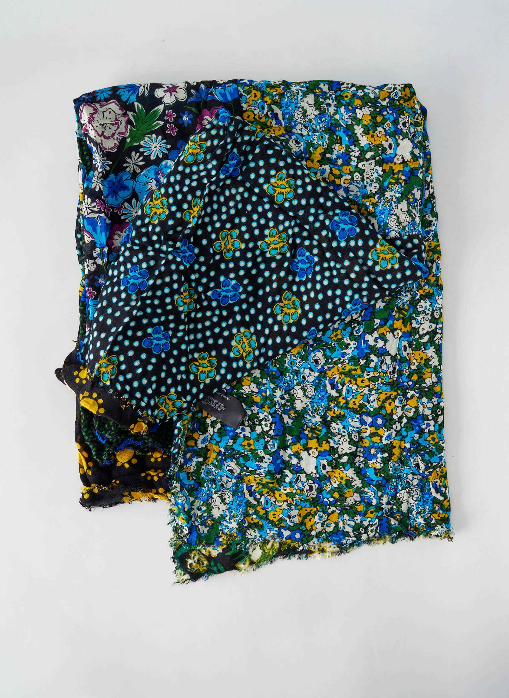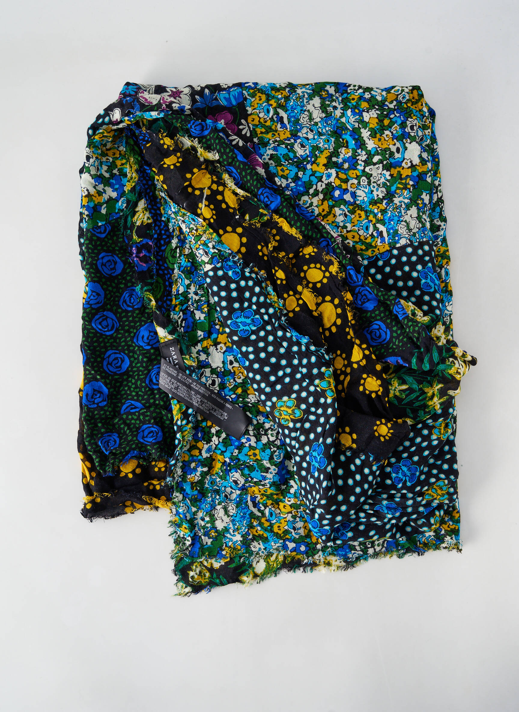 Craquez pour ce foulard ZARA pour femme, une vraie bonne affaire mode à petit prix ! Son motif floral original combine harmonieusement des touches de bleu, de jaune et de vert sur un fond noir, réchauffé par quelques touches graphiques à pois, pour apporter une touche d’élégance pétillante à toutes vos tenues. Léger et tendance, ce foulard est parfait pour sublimer votre look au quotidien sans vous ruiner.