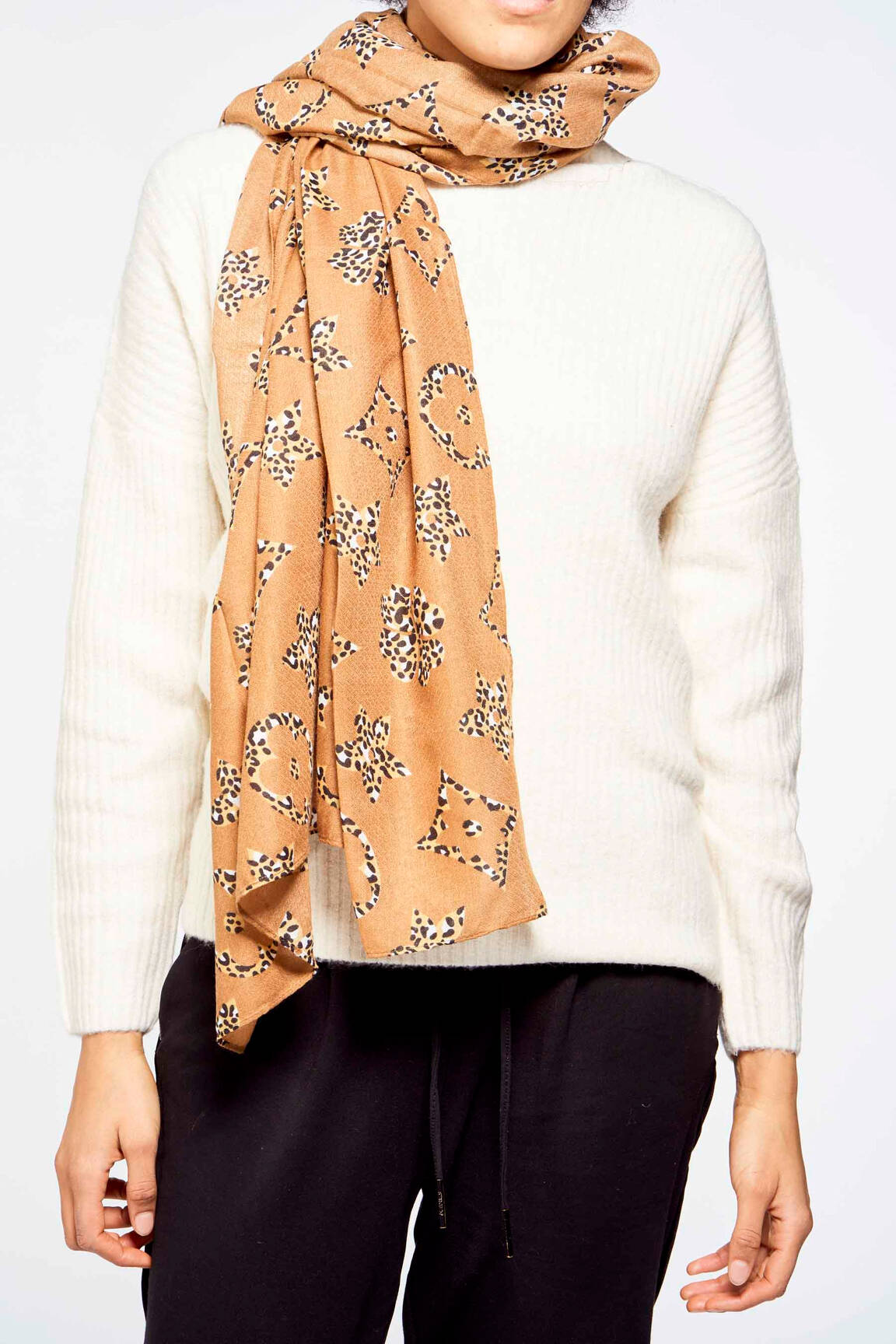 Ce foulard se noue facilement autour du cou pour réchauffer un pull uni ou s’enroule nonchalamment sur les épaules lors des journées plus douces. Il s’accorde avec un jean brut pour un effet naturel ou se marie à une veste claire et des accessoires dorés pour accentuer son côté lumineux. Pour un style raffiné, il complétera une robe sobre et des bottines, ajoutant une touche originale sans effort.
