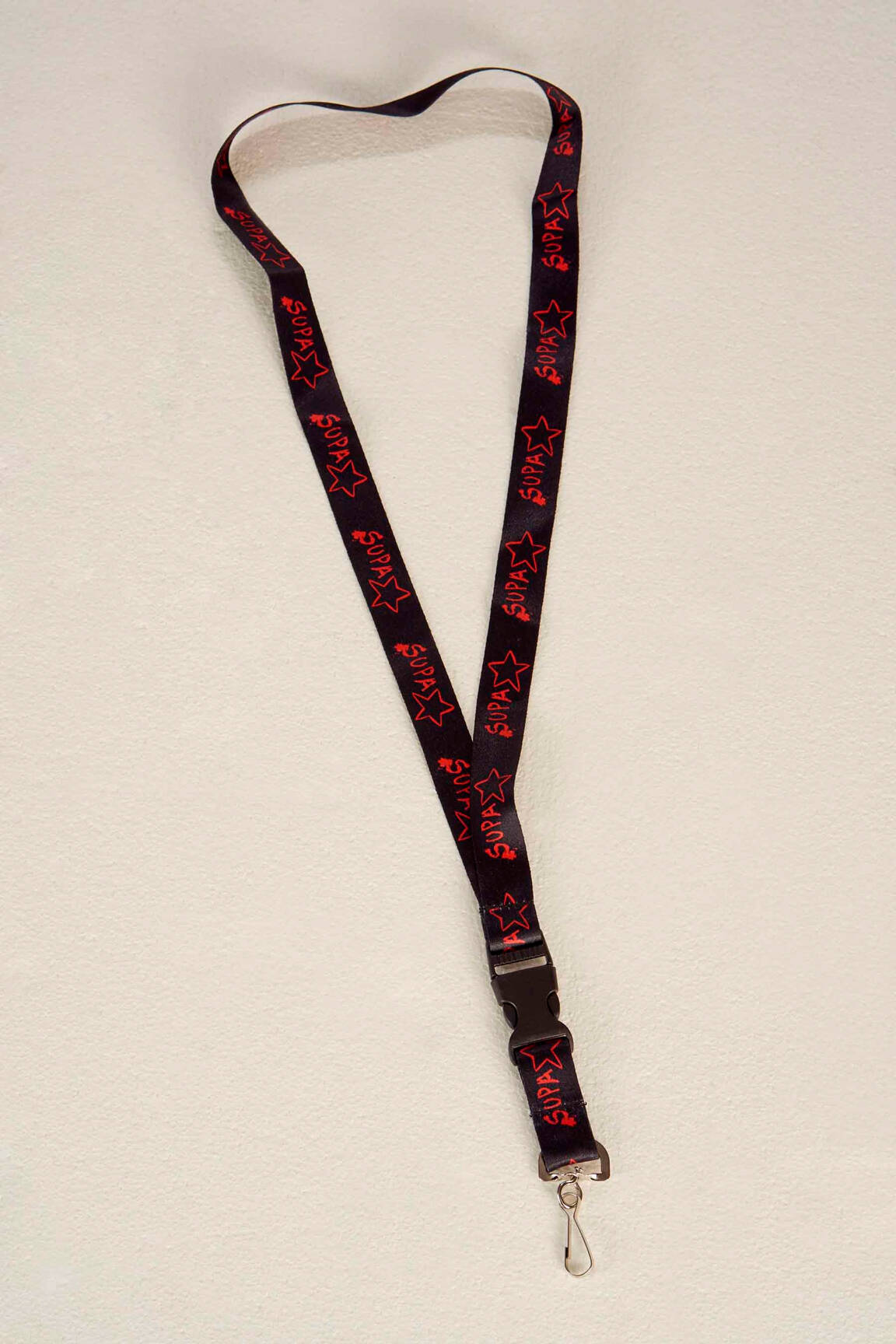 Profitez d’un accessoire tendance à petit prix avec ce porte-clés lanière de la marque SUPASTAR, idéal pour apporter une touche originale à votre quotidien sans vous ruiner. Son design noir rehaussé de motifs étoiles et du logo imprimés en rouge séduit par son style urbain et sa praticité, parfait pour garder vos clés ou votre badge à portée de main tout en faisant des économies.