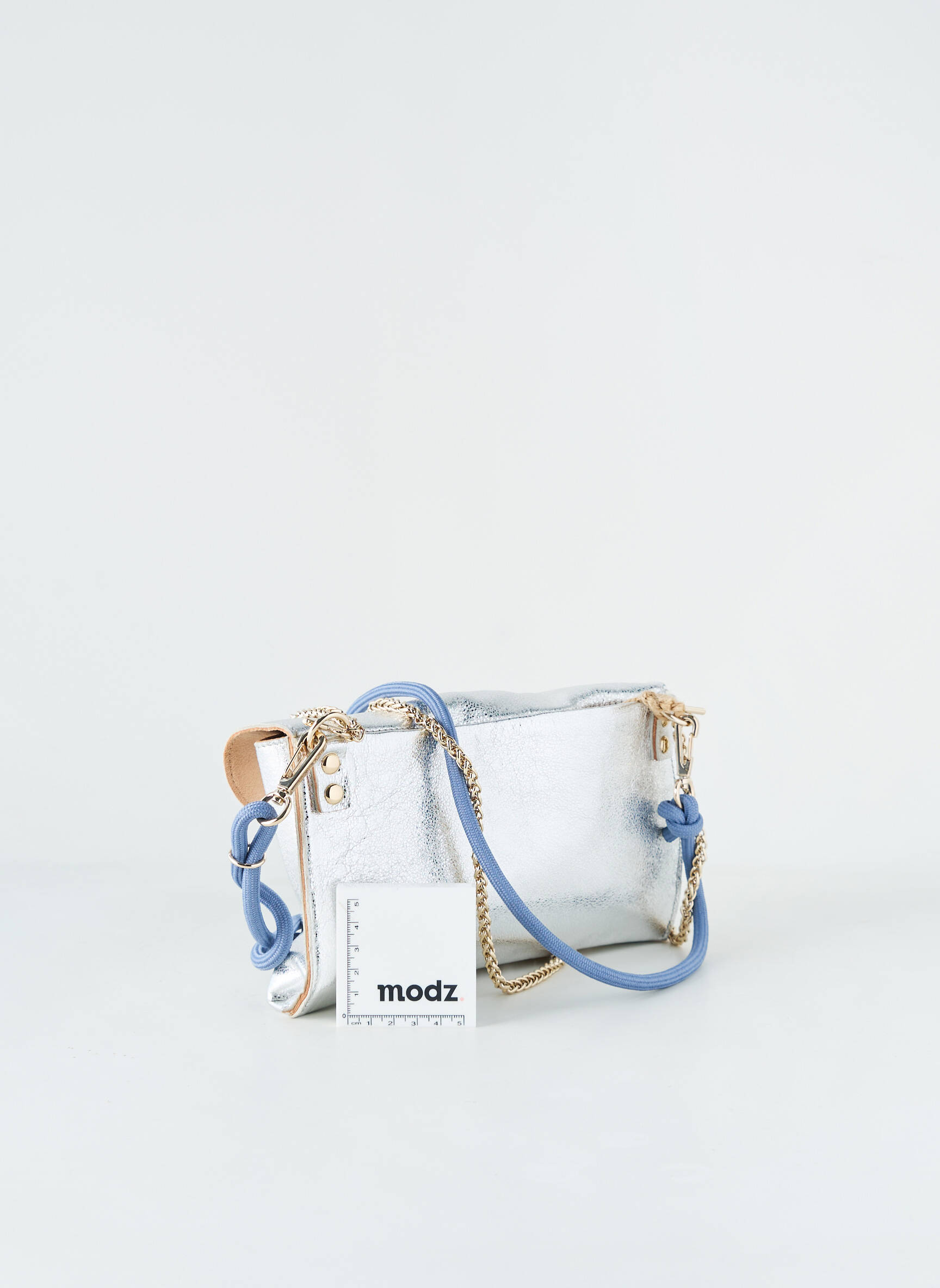 Faites-vous plaisir sans vous ruiner avec ce sac CRAIE pour femme, une pièce tendance à prix doux qui se démarque par son mélange d’argenté lumineux et d’empiècements bleu pastel. Son rabat original et sa chaîne dorée apporte une touche d’élégance moderne, tandis que le cordon bleu lui confère une note décontractée. C’est l’accessoire parfait pour compléter vos tenues avec style tout en réalisant de belles économies.