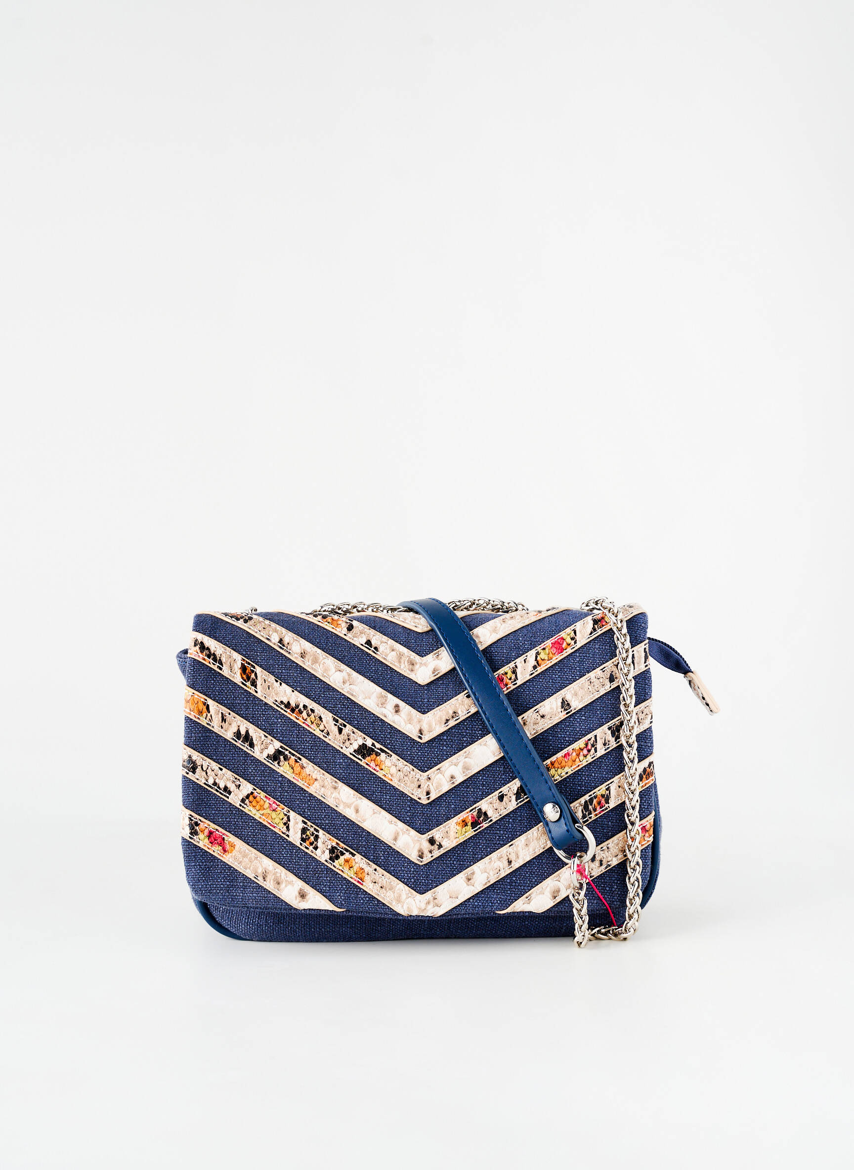 Offrez-vous un look tendance à petit prix avec ce sac FUCHSIA pour femme, un vrai bon plan pour sublimer toutes vos tenues sans vous ruiner. Son design graphique associe des bandes bleu marine et beiges agrémentées de motifs colorés pour un effet moderne et dynamique, tandis que la bandoulière chaîne apporte une touche chic et actuelle. Spacieux et pratique au quotidien, ce sac allie élégance et économie, idéal pour celles qui recherchent un accessoire stylé à prix malin.
