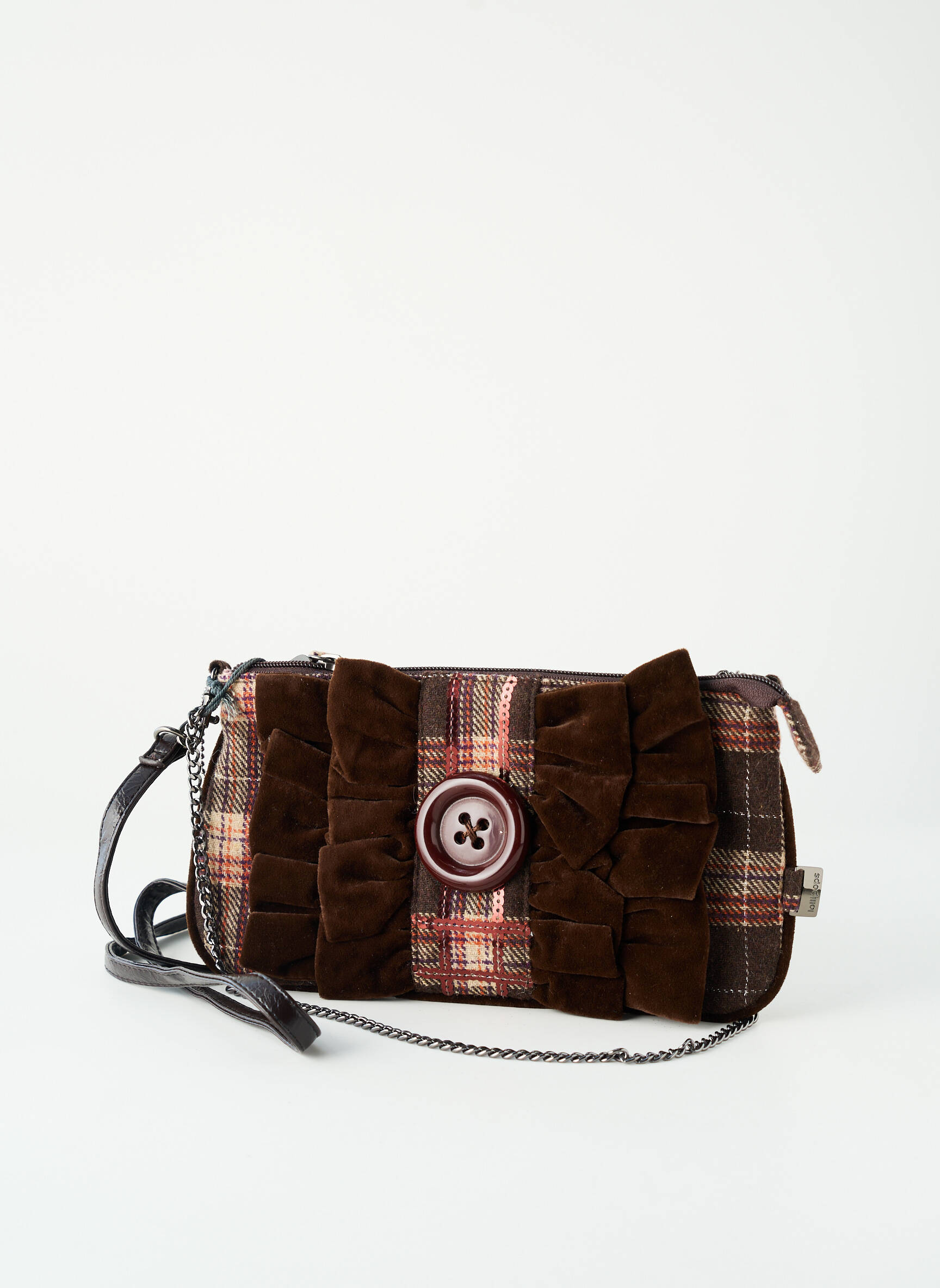 Craquez pour cette belle affaire avec le sac Lollipops pour femme, un accessoire accessible qui conjugue style et économie sans compromis. Son design original mêle judicieusement une base à motif tartan aux détails en velours chocolat, rehaussé d’un large bouton central, pour un look aussi tendance qu’unique. Grâce à sa bandoulière fine et sa taille idéale, il vous accompagne aussi bien en journée qu’en soirée, le tout à un prix mini qui vous permet de rester chic sans vous ruiner.