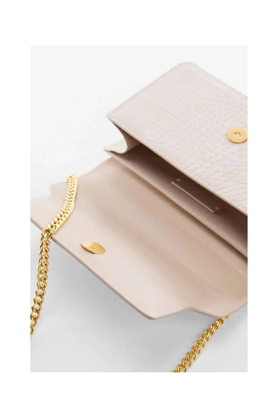 Voici l'occasion parfaite d'accessoiriser vos tenues avec élégance sans vous ruiner grâce à ce sac MANGO pour femme, affichant une finition effet croco très chic et sublimé par une chaîne dorée qui apporte une touche lumineuse et moderne à votre look. Ce modèle pratique et tendance est idéal pour sublimer vos soirées comme vos journées tout en profitant d’un vrai bon plan à prix mini.