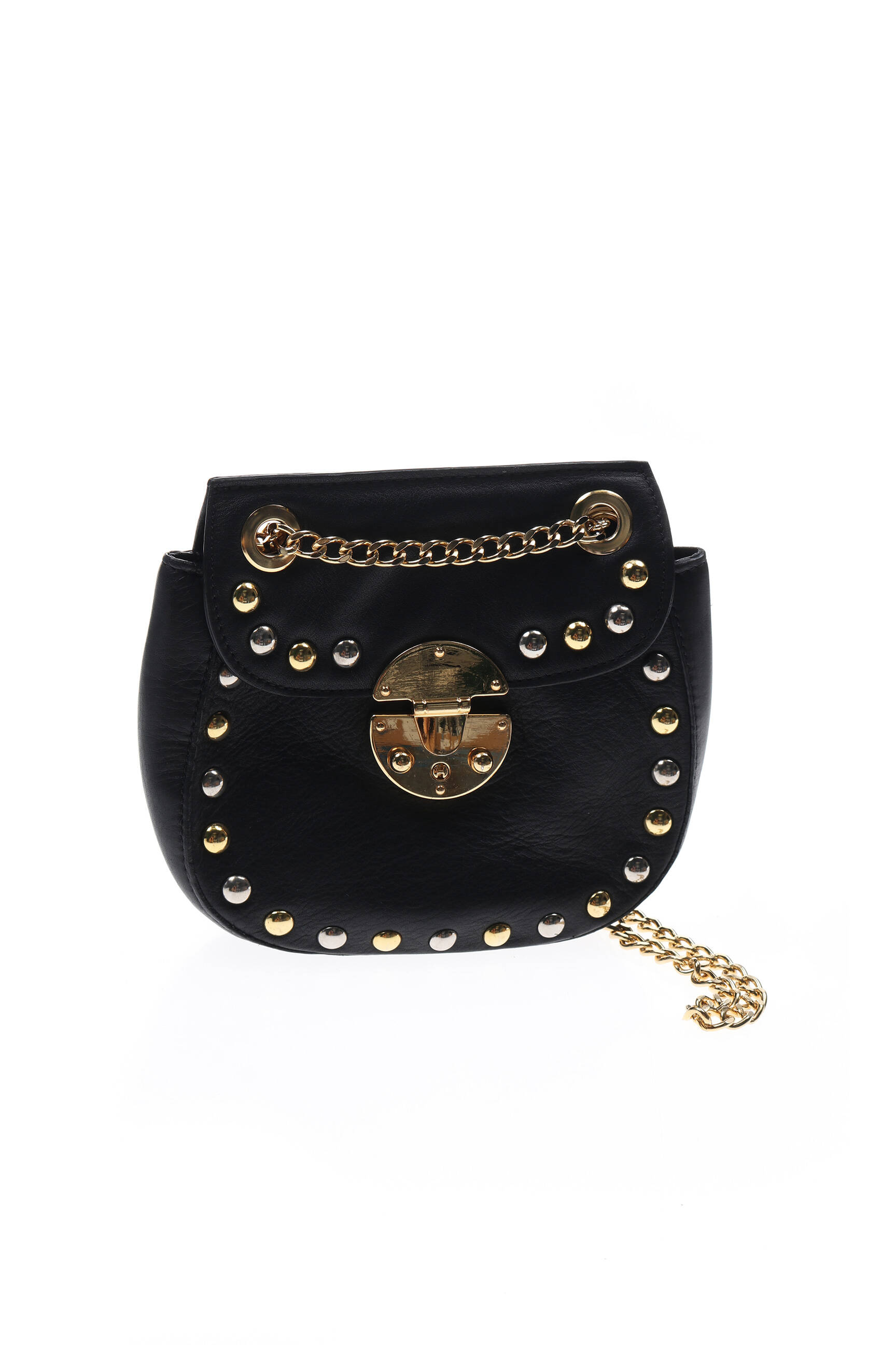 Mini sac en cuir clouté. 1 Volume intérieur avec 1 poche ouverte.